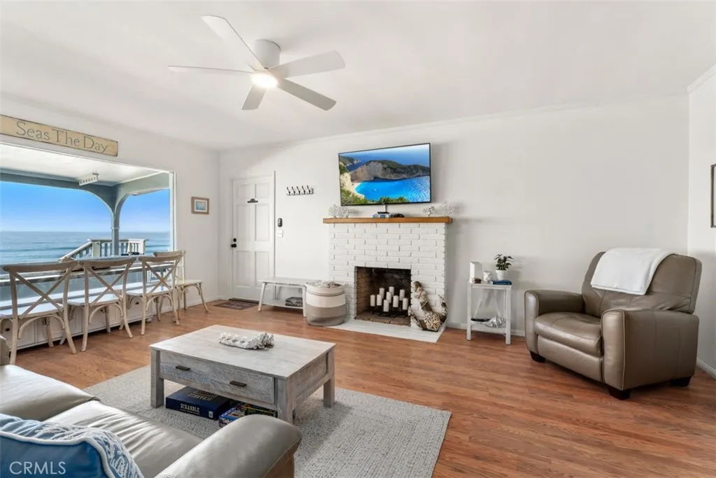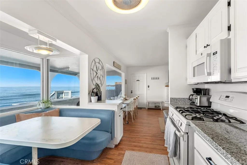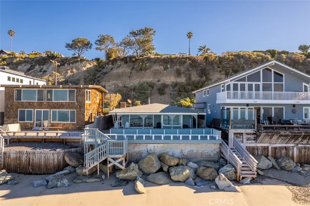 Furnished Vacation Rental. Rates are nightly & seasonal. Minimum 5 nights. Seas the Day Beach House is a clean & updated 1,012 sq. ft. BEACHFRONT detached Single Family Home that sits on a 2,400 sq. ft. private lot. in the exclusive 24 hour guard gated community of Beach Road. At low tide, you will enjoy beach access right in your backyard. At high tide, you will sit and enjoy the feeling of being on a boat. Enjoy incredible sunsets, coastline, Catalina Island, & San Clemente Island views with beach access from the spacious covered wrap-around deck. A peaceful place to listen to the ocean waves and enjoy the ocean breezes while spotting dolphins, whales, and other sea life. The cottage offers 2 bedrooms, 1 bedroom with a queen bed, & 1 bedrooms with a full bed & 3 twin beds & office space, 1 full bath, an outdoor shower, a living room with a decorative fireplace, a dining area, laundry, & a full kitchen with a diner-style built-in nook that enjoys panoramic ocean and city views day and night. There is free private parking in front of the property. This magical cottage also has an attached garage filled with beach toys for enjoying the ocean and the nearby cities. The bike trails will take you from the property to Dana Point, San Clemente, and San Juan Capistrano. Stay a short distance to visit Laguna Beach, Newport Beach, and other nearby cities each with its own unique charm. If you are looking for adventure, you will be in close proximity to parks, fine dining, trails, events, fishing, golf, and endless opportunities for entertainment are all nearby. There is a train that runs behind the neighborhood that has a train station 1 mile away making traveling by train to Oceanside, Los Angeles, or beyond very accessible. The Free Dana Point Trolly picks up at the end of the community & connects with Free Trolleys from other nearby beach cities. Come & relax or venture out just minutes to the beaches, restaurants, parks & biking trails. Just bring your clothes & unwind because starter kits for all your needs will be included. Maximum occupancy of 6 people, 1 small dog will be considered. Cleaning fee $250 per stay & pet fee $500 per stay. Short Term Rental Permit number STR23-0021.