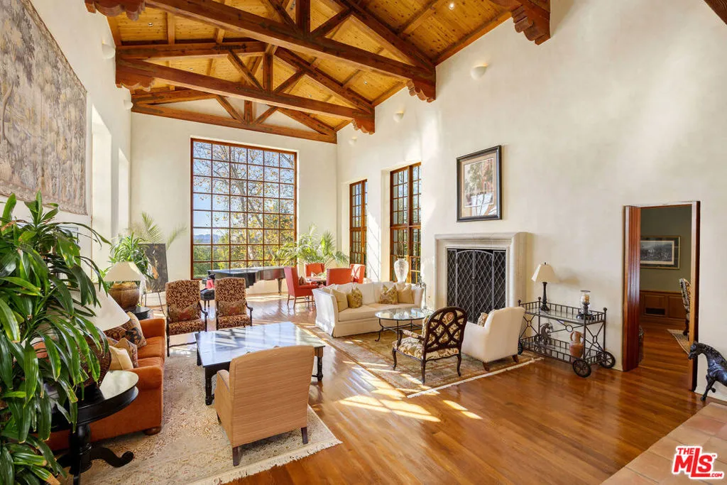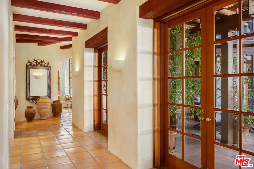 The Hacienda. Welcome to this move-in-ready Spanish timeless masterpiece, a true pinnacle of Spanish country architecture and design. Perched on a sprawling 2-acre corner lot in the exclusive Ashley Ridge section of the 24-hour guard-gated Hidden Hills, this Wallace Neff inspired custom California-style Hacienda spans approximately 9,402 square feet of unparalleled craftsmanship and elegance. Nestled in total privacy and serenity, this stunning estate seamlessly blends indoor and outdoor living, centered around a picturesque 2-story fountain courtyard perfect for hosting dinner parties and gatherings. The grounds feature covered outdoor spaces, a swimmer’s pool and spa, and a beautifully manicured lawn ideal for play or relaxation amidst mature trees that attract songbirds and pollinators, enhancing the tranquil ambiance. The main residence offers six luxurious bedrooms, including an enormous primary suite, or an optional five en-suite bedrooms and a library/office, along with seven baths. Highlights include a dramatic, wood-beamed 2-story great room, a cozy theater, a large formal dining area, and an open, light-filled chef’s kitchen equipped with top-of-the-line stainless steel appliances. A family room with an adjacent butler’s pantry and a mudroom/laundry room complete the home’s functional yet luxurious layout.The property’s extensive amenities extend to a 2-story guest house, which includes a living room, dining area, second kitchen, second washer/dryer, steam shower, powder room, two fireplaces, and an upstairs en-suite bedroom with a hotel-style bath and covered outdoor veranda.Designed for ultimate entertainment and leisure, the estate boasts a newly resurfaced North/South tennis court with stadium seating (convertible into four pickleball courts), a vineyard with 200 mature cabernet vines yielding approximately 300 bottles of wine annually, and a charming tasting gazebo with breathtaking mountain views. A pub-style bar with commercial refrigeration and an adjacent subterranean wine cellar further enhance the lifestyle this estate offers. Car enthusiasts will revel in the private auto motor court featuring eight bays, including a 5+ car garage, workshop, and storage bays. Throughout the home, timeless details abound: seven fireplaces, vaulted truss and lodgepole high ceilings, beveled glass doors, dual-glazed windows, solid hardwood, and paver flooring, showcasing its meticulous design and craftsmanship.Experience the exclusivity of Hidden Hills with its vibrant community events, including a weekly farmer’s market, summer BBQs, musical theater, and more. This property is a rare gema fully furnished, one-of-a-kind Spanish masterpiece offering unmatched privacy, timeless elegance, and world-class amenities. There is truly nothing like it among the grand estates of Hidden Hills. The Rental Property Owner seeks a long term lease agreement only. RPO prefers a 2 year lease minimum but may possibly consider 18 months.