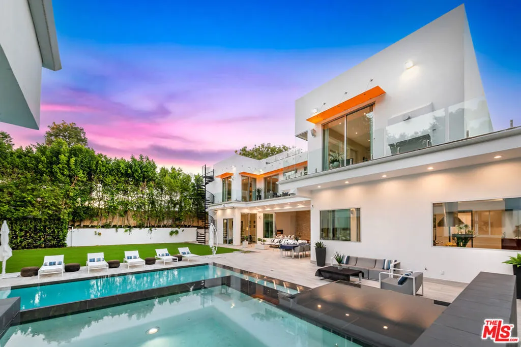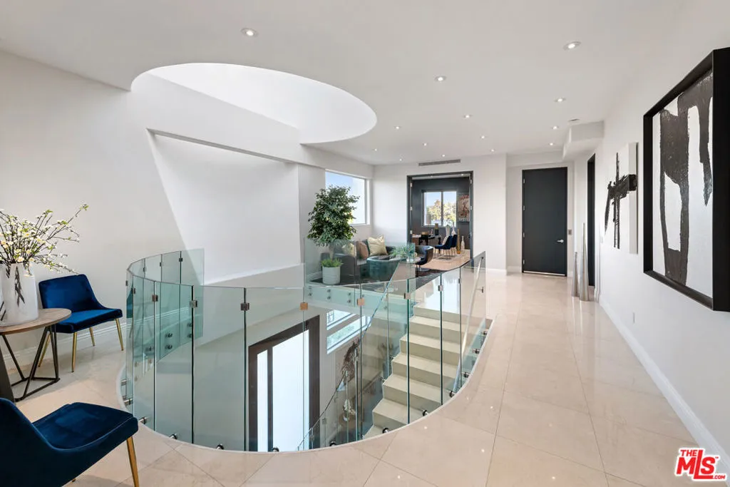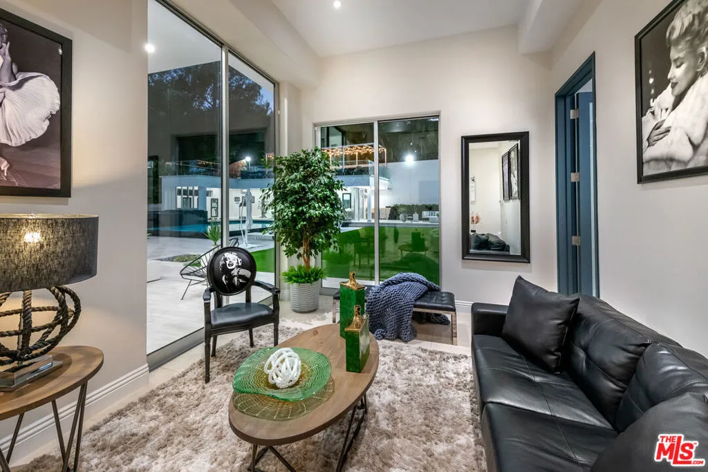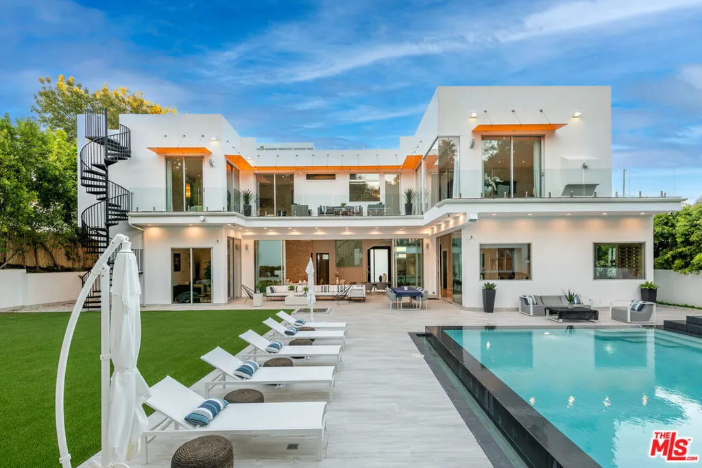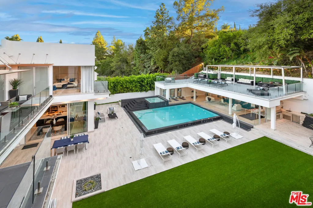 Privately gated and architecturally striking, this contemporary Encino masterpiece is thoughtfully designed for elevated living and effortless entertaining. Expansive walls of floor-to-ceiling glass blur the line between indoors and out, opening to multiple rooftop and deck spaces, a resort-style pool and spa, and a fully equipped pool house creating a seamless indoor-outdoor lifestyle of the highest caliber. The dramatic great room flows directly into a chef’s kitchen featuring Calacatta Gold marble countertops, Viking appliances, and sleek stainless-steel finishes. Additional highlights include a dedicated home theater with 4K projection and premium surround sound. Upstairs, six generously sized ensuite bedrooms offer privacy and comfort, including a secluded primary retreat with an expansive balcony, walk-in closet, private office, and a spa-inspired bath complete with an infinity soaking tub, dual vanities, and steam shower. This privately gated SMART home is outfitted with integrated Sonos audio, LED lighting, expert landscaping, a striking vertical garden, and a three-car garage. A bold expression of modern luxury, this residence is a true statement home in one of Encino’s most desirable settings.