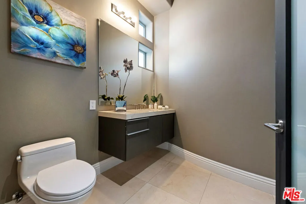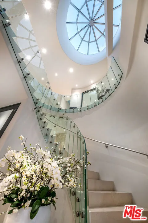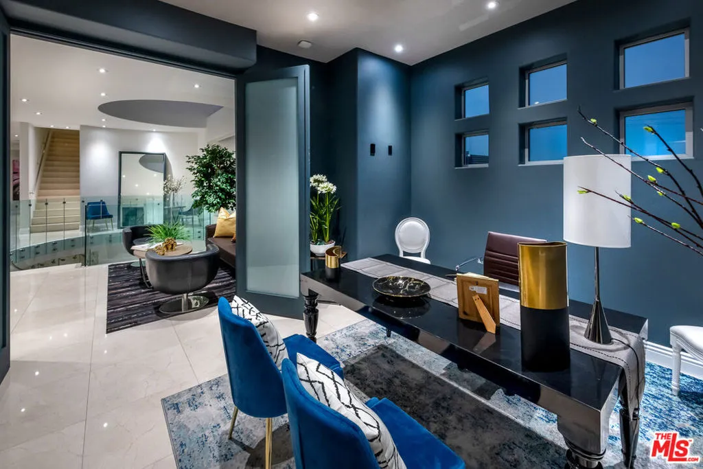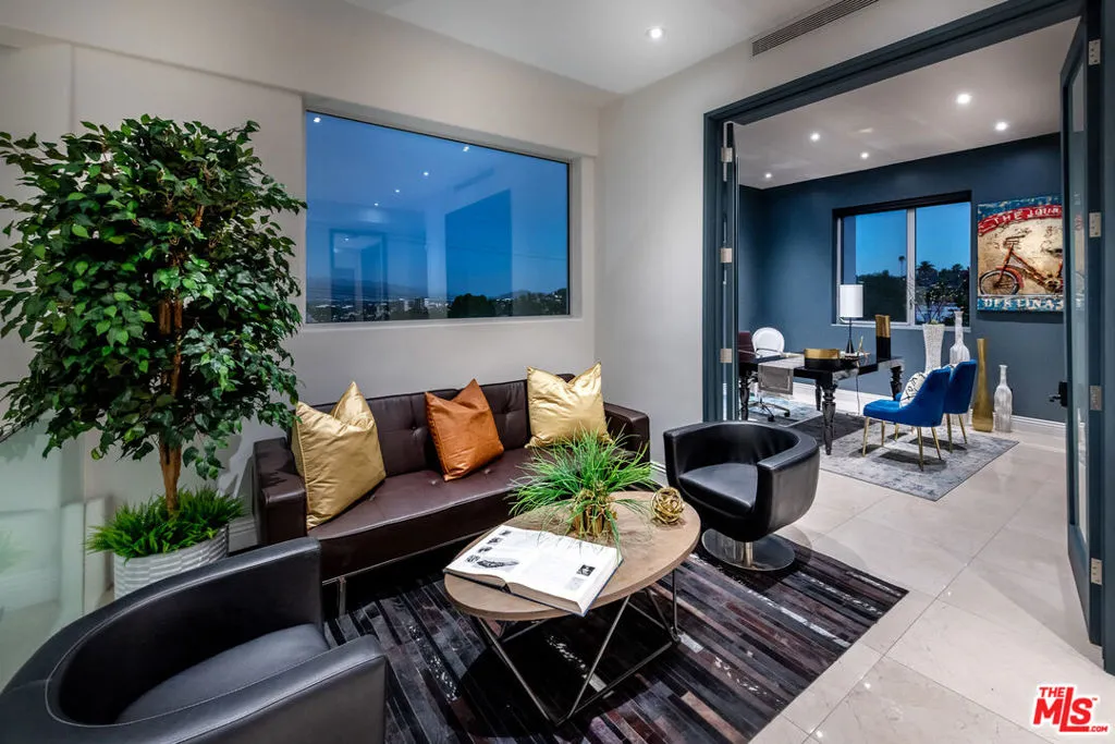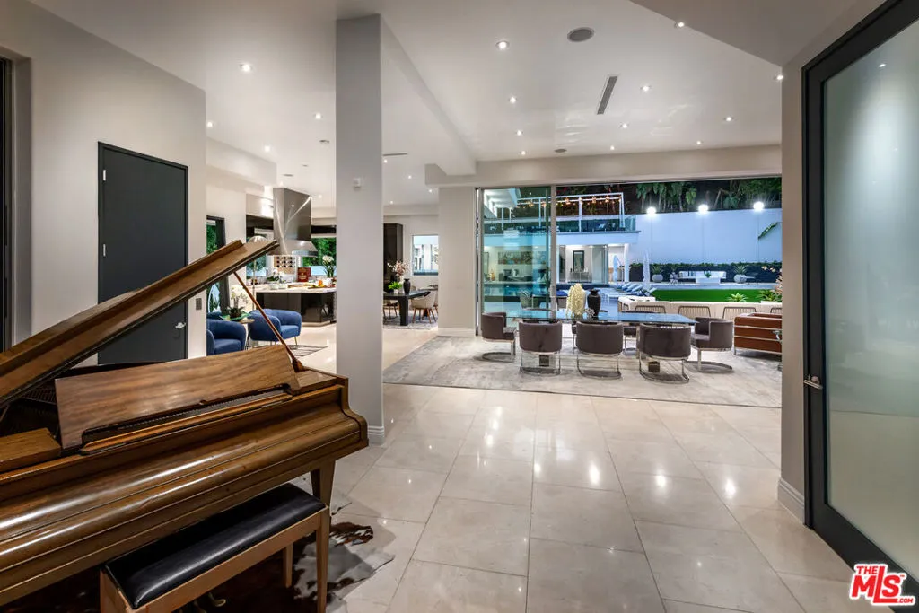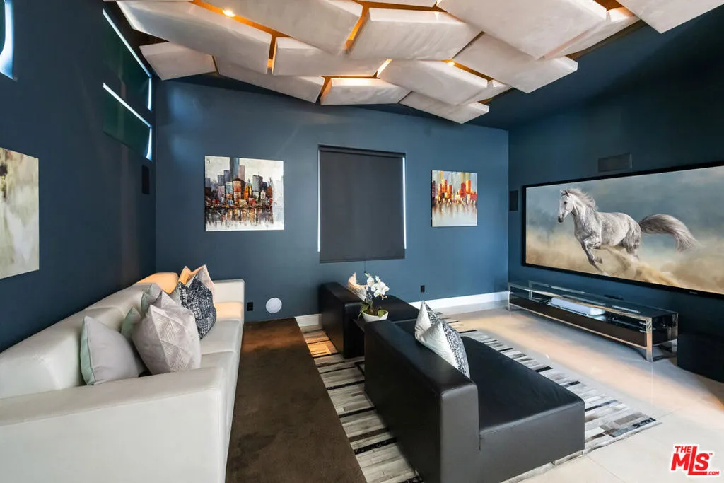 Privately gated and architecturally striking, this contemporary Encino masterpiece is thoughtfully designed for elevated living and effortless entertaining. Expansive walls of floor-to-ceiling glass blur the line between indoors and out, opening to multiple rooftop and deck spaces, a resort-style pool and spa, and a fully equipped pool house creating a seamless indoor-outdoor lifestyle of the highest caliber. The dramatic great room flows directly into a chef’s kitchen featuring Calacatta Gold marble countertops, Viking appliances, and sleek stainless-steel finishes. Additional highlights include a dedicated home theater with 4K projection and premium surround sound. Upstairs, six generously sized ensuite bedrooms offer privacy and comfort, including a secluded primary retreat with an expansive balcony, walk-in closet, private office, and a spa-inspired bath complete with an infinity soaking tub, dual vanities, and steam shower. This privately gated SMART home is outfitted with integrated Sonos audio, LED lighting, expert landscaping, a striking vertical garden, and a three-car garage. A bold expression of modern luxury, this residence is a true statement home in one of Encino’s most desirable settings.