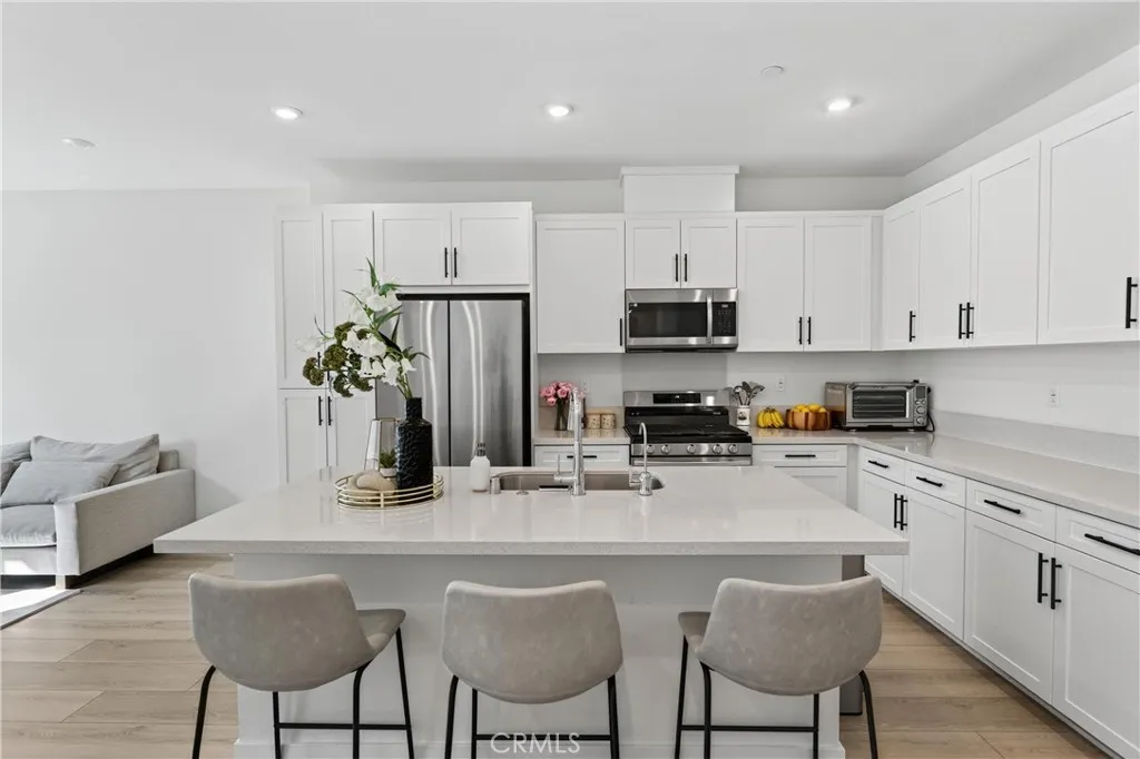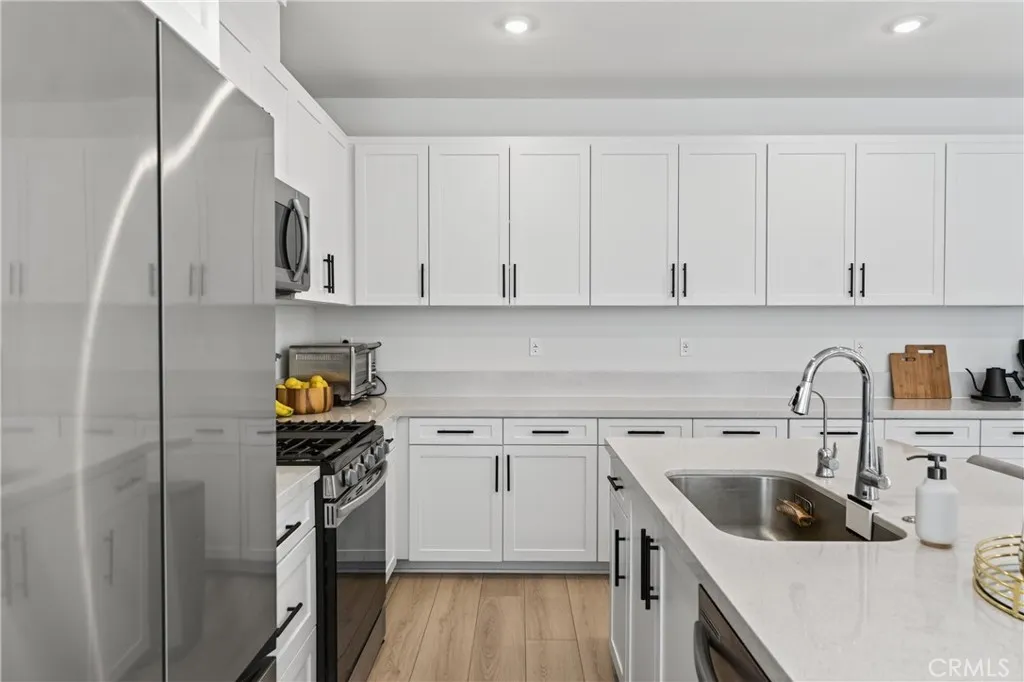 THIS HOME QUALIFIES FOR A $30,000 GRANT! Can be used towards down payment, closing costs, or lower APR. Welcome to this PAID OFF solar powered home (save on energy), with 2 EN-SUITE bedrooms, 2.5 baths, 1320 sq ft of open living space in a secure GATED COMMUNITY. Comes with a DIRECT ACCESS, OVERSIZED 2 car garage, EV charging outlet, and in-unit washer/dryer. This model comes with more storage than other models and has window coverings installed, upgraded luxury vinyl flooring THROUGHOUT, quartz countertop, 5 burner GAS stove, and shaker cabinets. ZERO CARPET. The community has a low HOA, guest parking and amenities to enjoy. Amenities include security gates, fire pit lounge, outdoor bbq, half basketball court, playground, and dog park. Sellers will purchase a year HOME WARRANTY for the buyers.