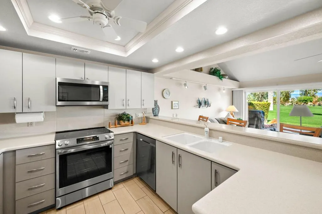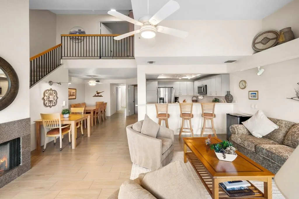 Two Story Riviera Plan – 1808 sq ft – with north facing patio, inside unobstructive views of golf course and mountains, 2B master suites, master suite balcony upstairs has bumped out balcony with extra square footage to use as office or whatever you may wish, Plus there is a Den, 3 full baths of which the hall bath and upstairs bath and been redone.Newer kitchen counter tops, cabinetry, and appliances. Newer washer and dryer standard size, new flooring, and new windows throughout.All the big ticket items have been redone, including A/C, and hot water heater, come see for yourself.Unit offered turnkey furnished.Woodhaven is an equity owned club with allthe amenities one would need including 7 tennis courts and 4 pickle ball courts, plus a full service clubhouse to fit all your needs.HOA dues of $795.00 a month cover cable TV, internet, HBO and Show Time, exterior maintenance and much more.