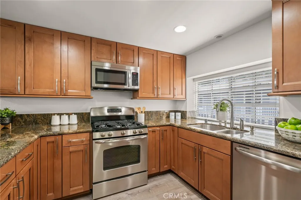 Welcome to 1410 Brett Place, Unit #334! A top-floor one-bedroom, one-bath residence offering panoramic views of the harbor, mountains, and city skyline. This light filled condo with high ceilings features an open concept floor plan designed for both comfort and style. The kitchen is appointed with granite countertops, newer cabinetry, stainless steel appliances, and recessed lighting. The living space offers a cozy fireplace and access to a balcony thru sliding glass doors perfect for enjoying the views and fresh air. The oversized bathroom has dual sinks with a granite countertop, elegant travertine flooring, a separate soaking tub, and a frameless glass-enclosed shower. A louver closet in the bathroom contains a washer-dryer single unit and storage shelves. Additional highlights include close location to elevator and stairs, central air and heat, an exterior storage closet, easy elevator access, and two side-by-side parking spaces, conveniently located next to the complex elevator, in the secure subterranean garage. The beautifully landscaped community offers tranquil running streams, waterfalls, a pool, and a spa, creating a resort-like atmosphere. Ideally located near shops, restaurants, theaters, gyms, and freeway access. Don’t miss this opportunity to own a top-floor condo with incredible views and amenities.