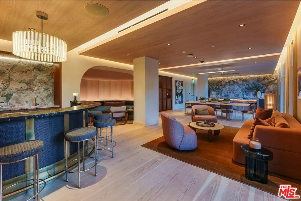 700 Broadway | Santa Monica’s Most Glamorous Penthouse Collection | Penthouse 822 at 700 Broadway is a rare corner three-bedroom, two-bath residence offering refined luxury, architectural volume. Soaring 10-foot ceilings, wide-plank flooring, and dramatic floor-to-ceiling glass create a light-filled sanctuary with seamless indoor-outdoor flow. The chef’s kitchen is a study in sophisticated design, appointed with Calacatta Monet marble countertops and full-height backsplash, custom oak cabinetry with integrated under-cabinet lighting, and a full suite of Thermador Smart Home appliances, including a wine refrigerator and microwave drawer. Spa-caliber bathrooms feature oak vanities, Cielo quartzite countertops, Taj Mahal porcelain tile, and finely crafted Dornbracht fixtures. Expansive 5-piece primary baths include a glass-enclosed shower, soaking tub, double vanity, and separate water closet, evoking a serene, resort-inspired atmosphere. Thoughtful upgrades include motorized roller shades, Nest thermostat, Lutron dimmable lighting, customizable Elfa closets, side-by-side LG washer and dryer, and secure keyless entry. Residents enjoy an unrivaled lifestyle with a 24/7 attended lobby boasting soaring double-height ceilings, on-site valet parking, and premier retail including Equinox Fitness Club and an upscale grocer. Amenities rival those of a private members’ club, featuring a lush 3/4 acre landscaped park with fire pits and outdoor dining, co-working lounge and library, entertainment lounge with bar and demonstration kitchen, indoor-outdoor fitness pavilion, speakeasy lounge with poker room, bowling alley, private screening room, pet spa, and a resort-style pool deck with 75-foot lap pool, hot tub, cold plunge, barrel saunas, reservable outdoor entertaining suites, and a rooftop dog run.