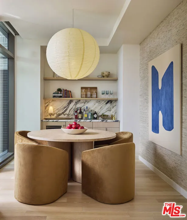 700 Broadway | Santa Monica’s Most Glamorous Penthouse Collection | Penthouse 722 at 700 Broadway is a rare corner three-bedroom, two-bath residence offering refined luxury, architectural volume, and an expansive private terrace with partial Pacific Ocean views. Soaring 10-foot ceilings, wide-plank flooring, and dramatic floor-to-ceiling glass create a light-filled sanctuary with seamless indoor-outdoor flow. The chef’s kitchen is a study in sophisticated design, appointed with Calacatta Monet marble countertops and full-height backsplash, custom oak cabinetry with integrated under-cabinet lighting, and a full suite of Thermador Smart Home appliances, including a wine refrigerator and microwave drawer. Spa-caliber bathrooms feature oak vanities, Cielo quartzite countertops, Taj Mahal porcelain tile, and finely crafted Dornbracht fixtures. Expansive 5-piece primary baths include a glass-enclosed shower, soaking tub, double vanity, and separate water closet, evoking a serene, resort-inspired atmosphere. Thoughtful upgrades include motorized roller shades, Nest thermostat, Lutron dimmable lighting, customizable Elfa closets, side-by-side LG washer and dryer, and secure keyless entry. Residents enjoy an unrivaled lifestyle with a 24/7 attended lobby boasting soaring double-height ceilings, on-site valet parking, and premier retail including Equinox Fitness Club and an upscale grocer. Amenities rival those of a private members’ club, featuring a lush 3/4 acre landscaped park with fire pits and outdoor dining, co-working lounge and library, entertainment lounge with bar and demonstration kitchen, indoor-outdoor fitness pavilion, speakeasy lounge with poker room, bowling alley, private screening room, pet spa, and a resort-style pool deck with 75-foot lap pool, hot tub, cold plunge, barrel saunas, reservable outdoor entertaining suites, and a rooftop dog run.