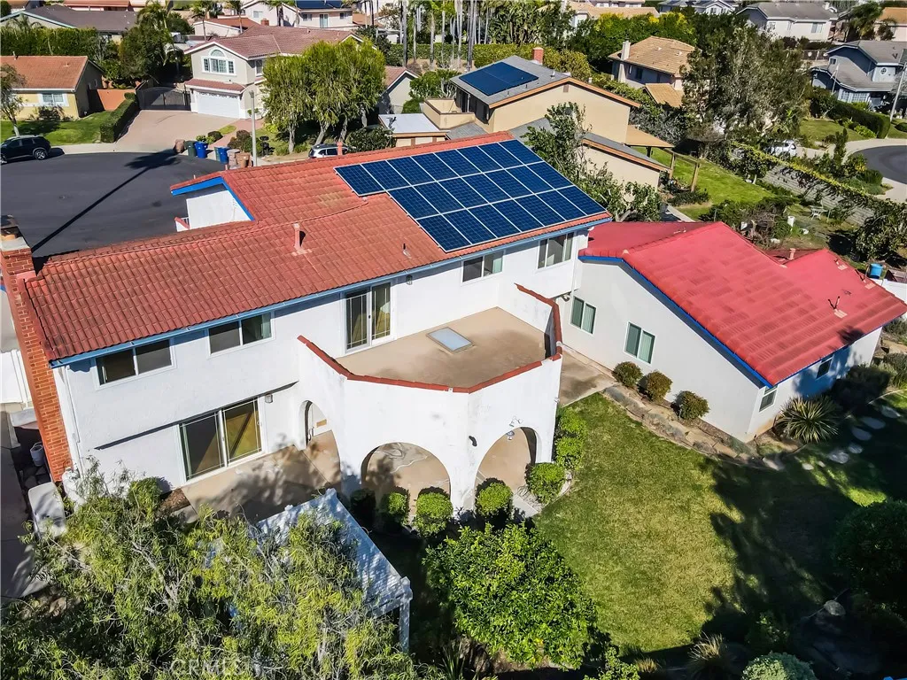 Rare opportunity owned by the same family since 1976 with extensive upgrades. Two-story 5-bedroom home featuring a spacious living room open to dining area with views of the manicured backyard. Laminate flooring throughout offers a modern feel. Updated kitchen includes Viking range, double oven and dishwasher, granite countertops, island, and hand-painted Portuguese tile murals. Private laundry room off kitchen. Family room features gas fireplace. Upgrades include tankless water heater, flagship water conditioning system, owned solar, and 30-year in-wall copper repiping with added insulation. Upstairs bedroom includes fireplace and private balcony. Primary suite features private balcony, walk-in closet, and updated ensuite bath. ** Additonal living room & kitchen combo w/vaulted ceilings, 1-bedroom, full bath, walk-in closet, separate A/C and heat, separate tankless water heater that could be converted to an ADU. **Detached backyard workshop includes A/C and heat mini-split, hot and cold indoor and outdoor water, attic storage, separate electrical panel, and grounded 20-amp outlets. Epoxy garage and workshop floors. Above-ground hot tub with Wi-Fi stereo and pergola. Automatic Generac system with two propane backup tanks. Mature orange, lime, avocado, and lemon trees.