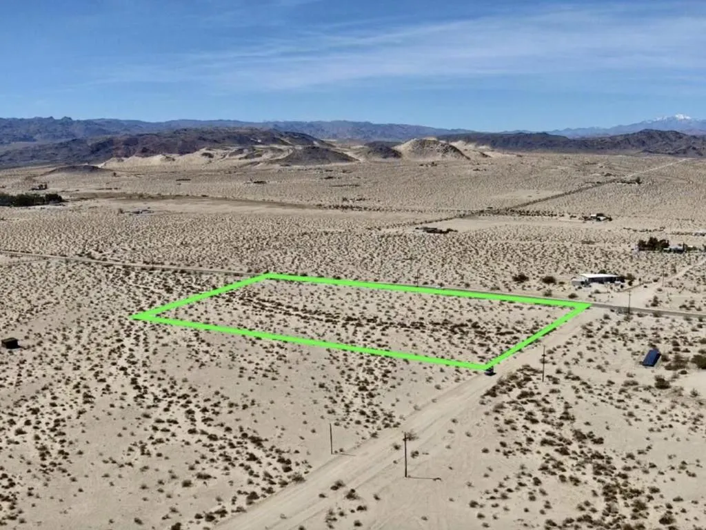 Owner will carry financing available! Paid water meter, paved road, electricity, privacy, and views. Gentle slope rises upwards to the northern section of the lot. Corner lot with pavement along Lear Ave and dirt road along Cielito Road. Horse property. Starry nights. Views of Indian Cove, the Little San Bernardino Mtns, and Copper Mtn. Peek-a-boo views of snowcaps on Mt. San Gorgonio. Property may allow up to three dwellings including ADU. Build the dream compound you’ve always wanted. 8 miles to the magical boulder cliffs of Indian Cove. 9 miles to Copper Mtn College. Joshua Tree National Monument is only 15 miles to the 29 Palms gate. 19 miles to the JT West entrance gate. Very hot vacation rental area. About 3 million tourists visit the JT National Monument annually. Enjoy the mid winters. Watch the jackrabbits, quail, and roadrunners. 48 miles to Palm Springs. 141 miles to Los Angeles. Buyers must contact the county of San Bernardino planning department with all questions on building and uses and total dwelling allowance. Buyers must contact the utilities agencies with questions and verifications of utilities. Address is not a real address and is for marketing purposes only. APN: 0610-281-01-0000 GPS: 34.196140, -116.149871 Property on S/E corner of Cielito and Lear Water Meter in photo is not actual water meter on property.