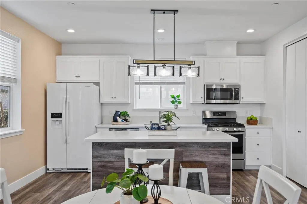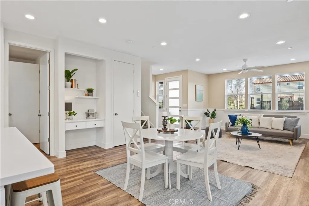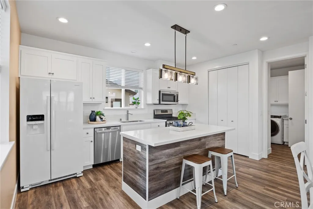 Built in 2021, this well-maintained 3-bedroom, 2.5-bathroom, two-story 1,560 SF home is located within Meriam Park and sits on one of the larger lots in the community. The ground floor features a spacious kitchen with an island and quartz countertops, a built-in desk area, and an open living space with two large storage closets. A utility laundry area with a half bathroom and abundant storage is also conveniently located on the main level.