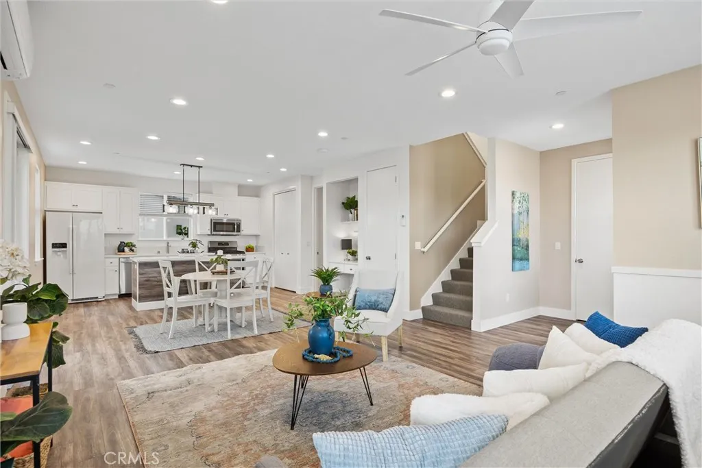 Upstairs, all three bedrooms are thoughtfully arranged, including a primary suite with a private patio balcony. The home is equipped with energy-efficient mini-split heating and cooling systems in each bedroom and the living area.