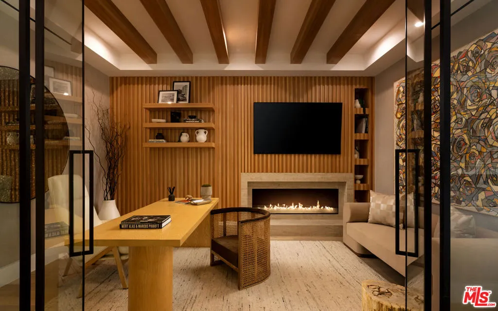 An absolute dream for recreational enthusiasts, growing families, and lovers of the al-fresco way of life, this exquisite haven includes a tropical open-air dining room, dedicated pickleball court, a professional-size basketball/sports court, and putting green, all enveloped by a flourishing leafy paradise. Enjoy a casual, fun-filled lifestyle at this private, family-friendly luxury resort that also features a cabana with outdoor kitchen and rainfall curtain, relaxation loggia, a 16-person sunken fire pit with glass view to pool, numerous sitting areas, organic gardens, and 3,000-square-foot rooftop deck optimized for entertaining under California skies. An expansive gated motor court provides parking for ten cars, and a striking entry calms the senses with soft organic tones complementing the lush hillside beyond. A gourmet chef’s kitchen is outfitted with bookmatched stone slabs, triple waterfall island, and Miele appliances as well as a commercial-grade walk-in refrigerator in the caterer’s prep galley. Both bar and wine room are showpiece standouts, and the theatre is expertly configured to match a true cinema experience. Upstairs, the primary wing alone spans 3,000 square feet and offers a lounge, two-sided fireplace, and a marvelous spa-worthy imported European stone-clad bathroom plus dual closet changing rooms, one of which features a walk-out balcony with fire pit overlooking the grounds below. Other amenities include an office, gym, sauna, and mud room. Indulge in an effortless resort-quality lifestyle from this extremely private entertainer’s compound surrounded by natural greenery with sumptuous canyon views, showcasing a variety of premier amenities on 1.3 acres of mostly flat usable land. Secluded in a park-like setting with no immediate neighbors, this ideal estate promises joyful existence and enduring, uninterrupted leisure from one of the most highly sought-after locales in the world. Welcome to the peak of contemporary luxury.