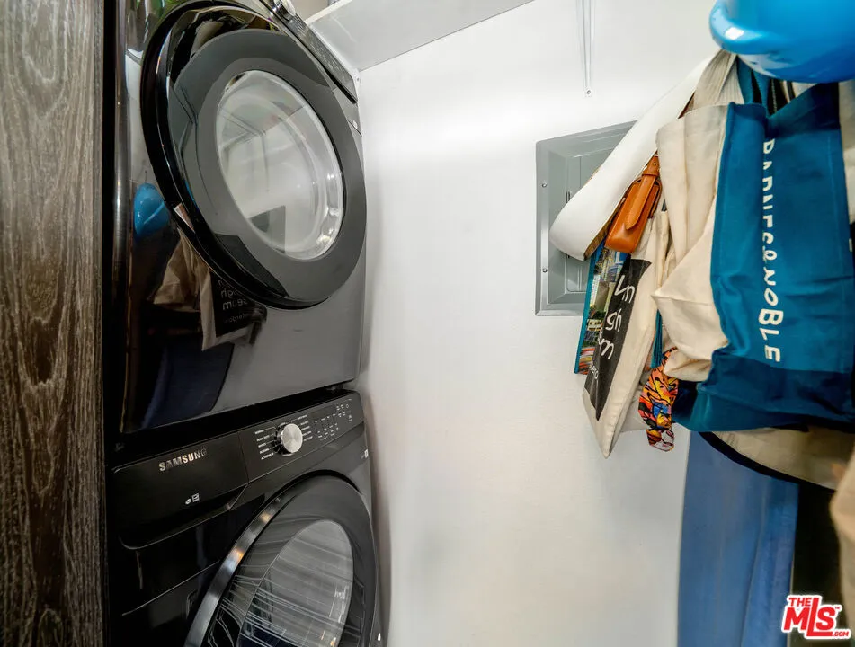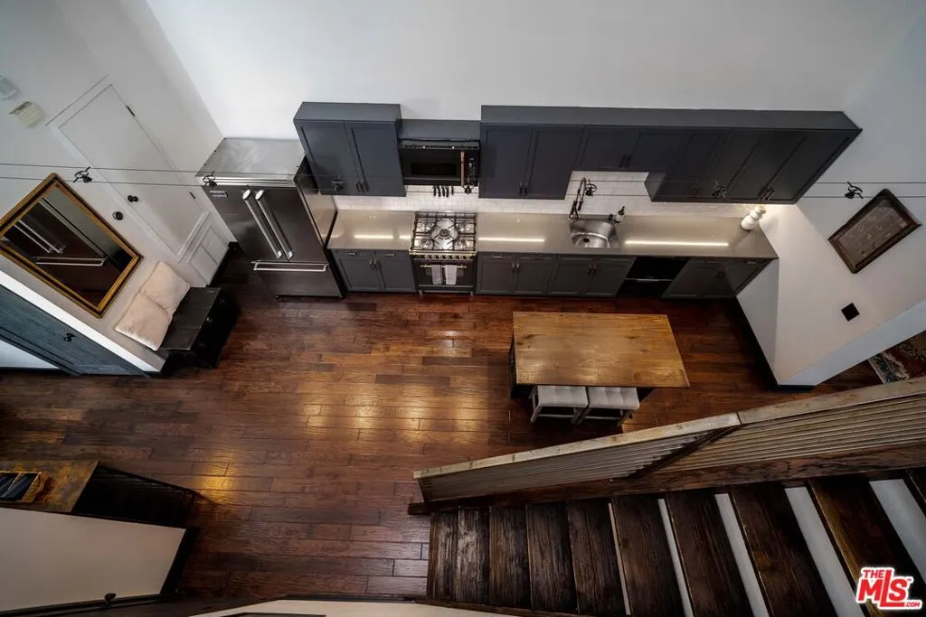 If you enjoy loft living, welcome to this stunning, remodeled top-floor loft, a true entertainer’s dream tucked into the Marina’s most dynamic and creative streets. Thoughtfully curated with high-end finishes and smart design, this condo blends dramatic architecture with modern comfort. Soaring 17+ foot ceilings and a wall of floor-to-ceiling windows flood the space with loads of natural light, framed by a custom motorized drapery that adds a bold designer touch. The open-concept layout includes a custom speakeasy-style bar, perfect for unwinding after a long day or kicking off an evening of entertainment or relaxation. The kitchen is a showpiece, featuring quartz countertops and a suite of top-tier appliances including a Viking Pro refrigerator, Ilve range, and Fisher & Paykel dishwasher. Both bathrooms are elevated with copper sinks, marble counters, custom-tiled showers, smart mirror lighting, and Toto bidet toilets. A private guest bedroom with en-suite bath is located on the main level, while the upstairs mezzanine hosts a spacious primary suite with a walk-in closet, room for a home office, and serene architectural views. Additional highlights include new HVAC 2024, custom cabinetry and doors, upgraded lighting, EV charging, guest parking, and a rooftop deck with city views.