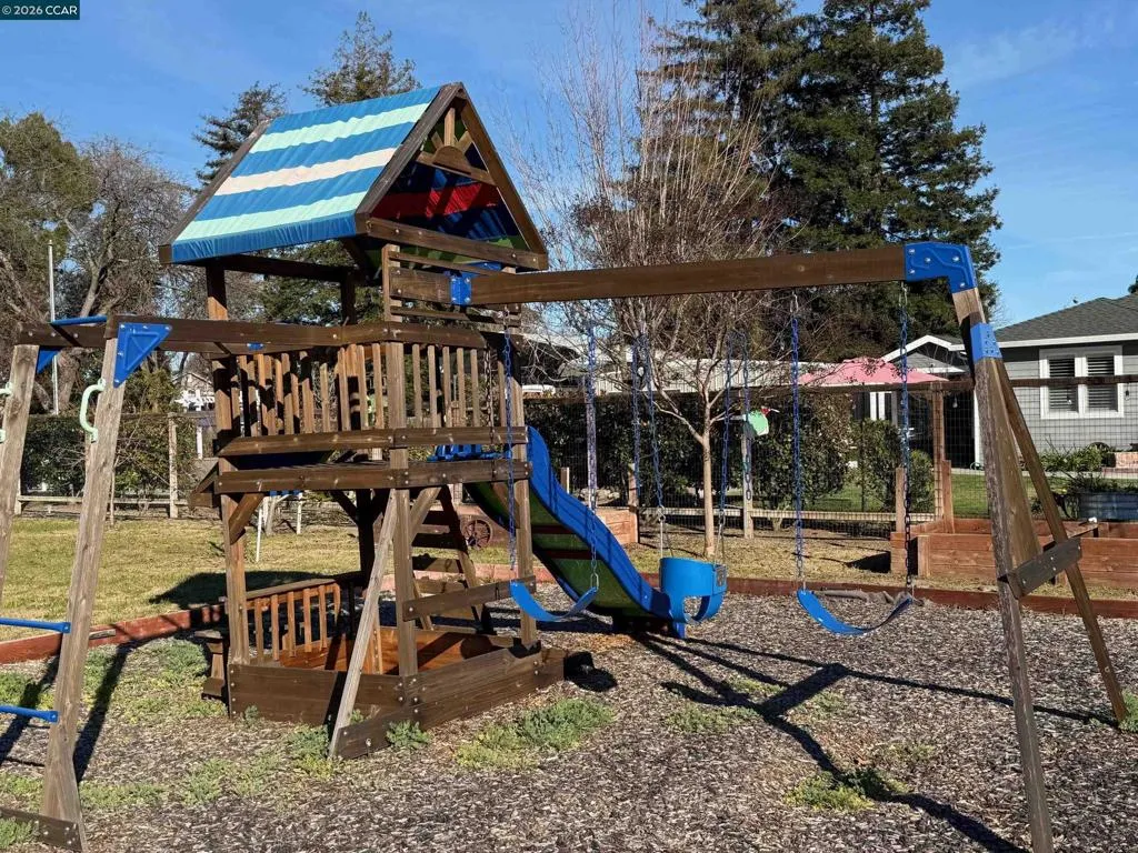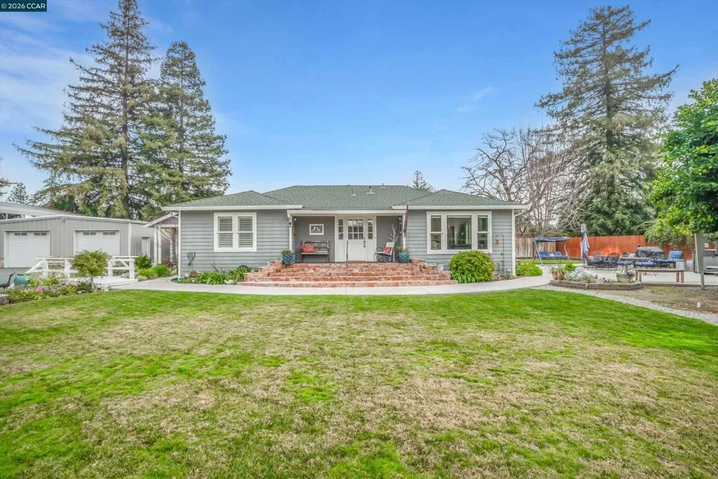 You drive down a private driveway and arrive at 1579 Farm Bureau Rd, Concord, a peaceful one-acre retreat offering space, privacy, and exceptional flexibility. The main home features three bedrooms and two bathrooms with beautiful hardwood floors and a light, bright kitchen showcasing white cabinetry and a center island that opens seamlessly to the living room—perfect for everyday living and entertaining. Enjoy indoor-outdoor living with two separate patios ideal for gatherings, relaxation, or quiet evenings under the stars. A detached, remodeled one-bedroom, one-bath cottage with its own washer and dryer adds incredible versatility, ideal for guests, extended family, rental income, or a home office. The property also includes an oversized two-car garage and RV parking complete with electricity and sewer hookups. Energy efficiency is enhanced with 20 solar panels and a backup battery. The expansive lot features garden beds, a playground, and a private well. Additionally, the front portion of the property offers potential for development, allowing for another single-family home or additional ADUs (buyer to verify). This is more than a home—it’s a lifestyle with room to grow.