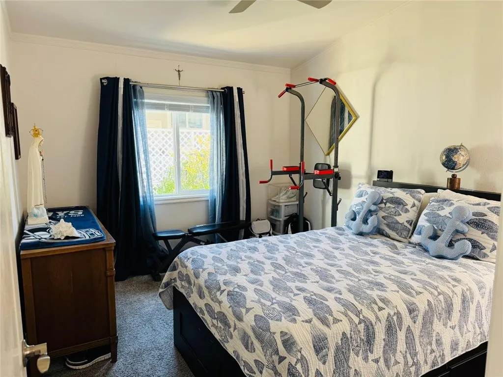 The well-appointed kitchen is both functional and stylish, boasting Corian countertops, stainless steel appliances, a double gas oven range, dishwasher, double-door refrigerator, and garbage disposal. Year-round comfort is assured with central air conditioning and heating, plus cordless ceiling fans in every room.