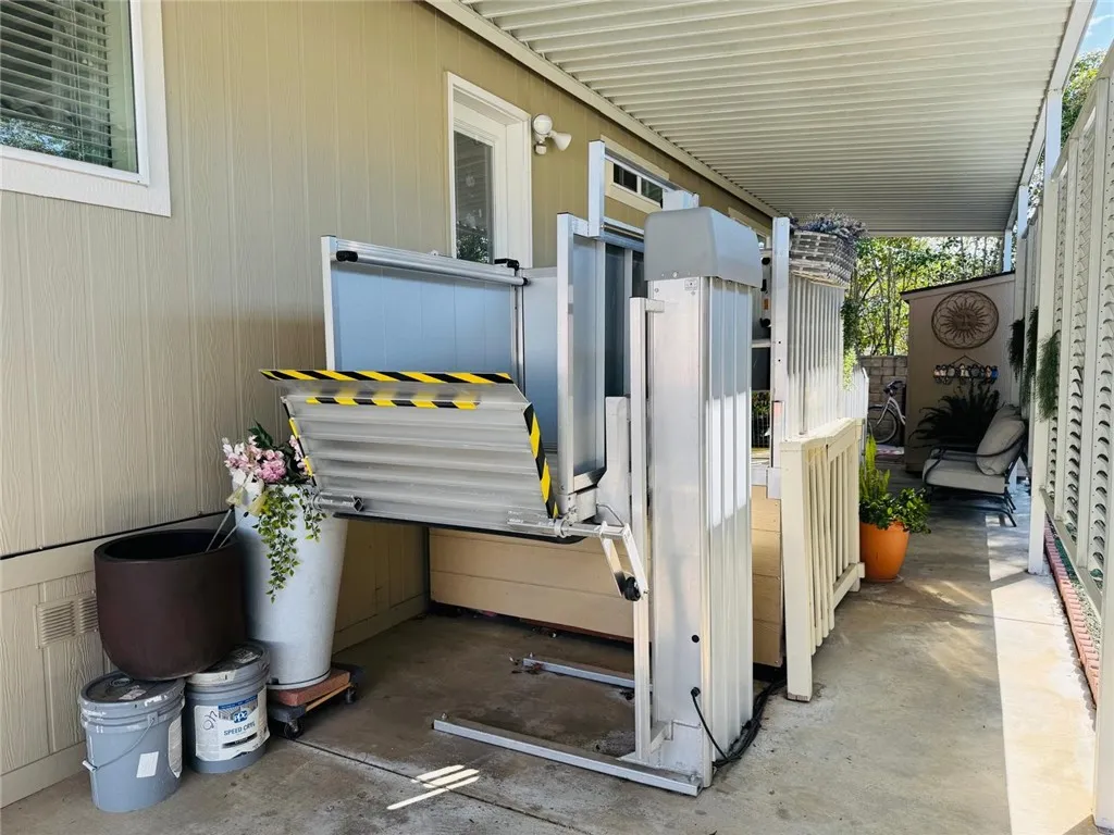 Additional highlights include a handicap-accessible automatic aluminum side lift with an attached aluminum deck and stairs, an easy-access carport accommodating two vehicles (or an SUV), guest parking conveniently located directly in front, a storage shed, extensive under-home storage, and a backyard pergola perfect for outdoor enjoyment.