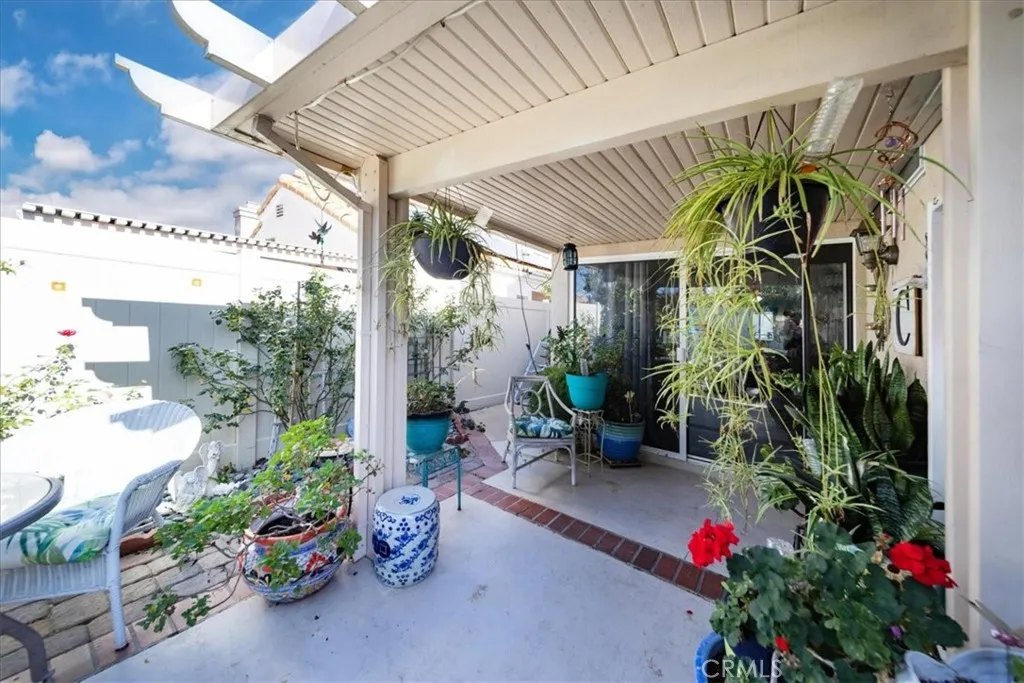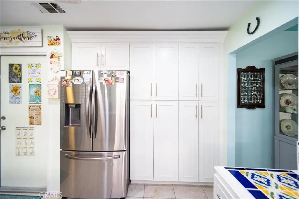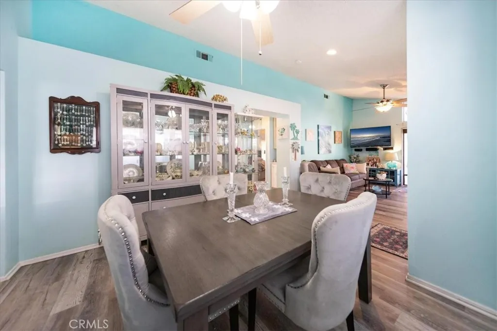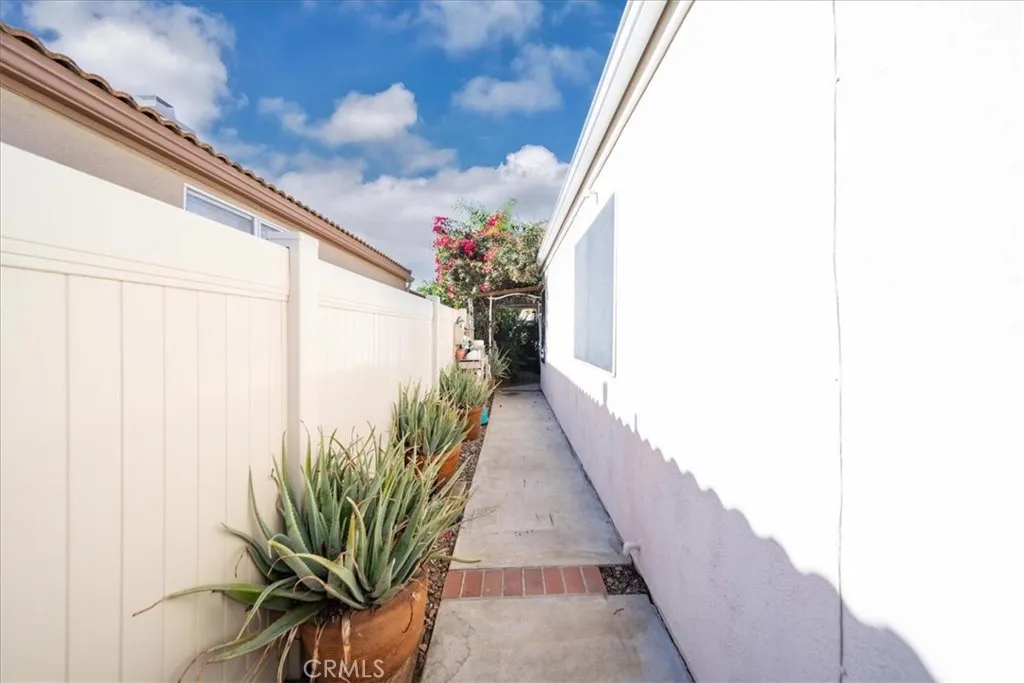 Welcome to the beautiful 55+ community of Palmilla on the Greens, located in the growing City of Menifee. This 3-bedroom, 2-bathroom single-story home offers 1,206 square feet of living space and is situated on a quiet cul-de-sac, making it well suited for an owner seeking privacy and a peaceful environment. The third bedroom, which has a double-door entry, could also be utilized as a den or office. The upgraded home includes a family room, a dining area, an eat-in kitchen, an indoor laundry area conveniently located in the hallway, and a two-car garage with storage. The family room features a gas fireplace, to include a new black tiled hearth and an overmantel decorative tiled surrounded mirror. The family room also has direct access to the backyard through a sliding glass door. The eat-in kitchen has been remodeled to include extended quartzite countertops, white cabinetry with pull-out shelving, ceramic tile flooring, recessed lighting, a newer microwave, and an imported Mexican tile backsplash that adds visual interest. The guest bathroom has been upgraded with a walk-in style tub and shower designed for easy access, as well as an upgraded vanity, mirror, and lighting. The primary suite bathroom includes an upgraded vanity with dual sinks, mirror, lighting, and elevated toilet. The primary bedroom also offers a customized closet and a sliding glass door with direct access to the backyard. The family room, dining area, hallway and primary bedroom had new waterproof vinyl flooring installed just last year. Owner has new vinyl planks that can be installed in the 2nd and 3rd bedroom before move in. The enclosed backyard, that includes a patio cover, enlarged patio with pavers, and beautiful new tropical landscaping, provides a comfortable outdoor space with portions of the fencing upgraded to vinyl. Additional features include ceiling fans in every room, indoor laundry for convenience, garage storage, and 18 leased solar panels that help reduce overall energy costs. The community offers two HOAs, the Palmilla HOA and the Menifee Master Association, for additional amenities and convenience. The Palmilla HOA offers social activities, clubhouse, pool and spa. The surrounding Menifee Master Association offers a bike path, and access to the lake and beach club.