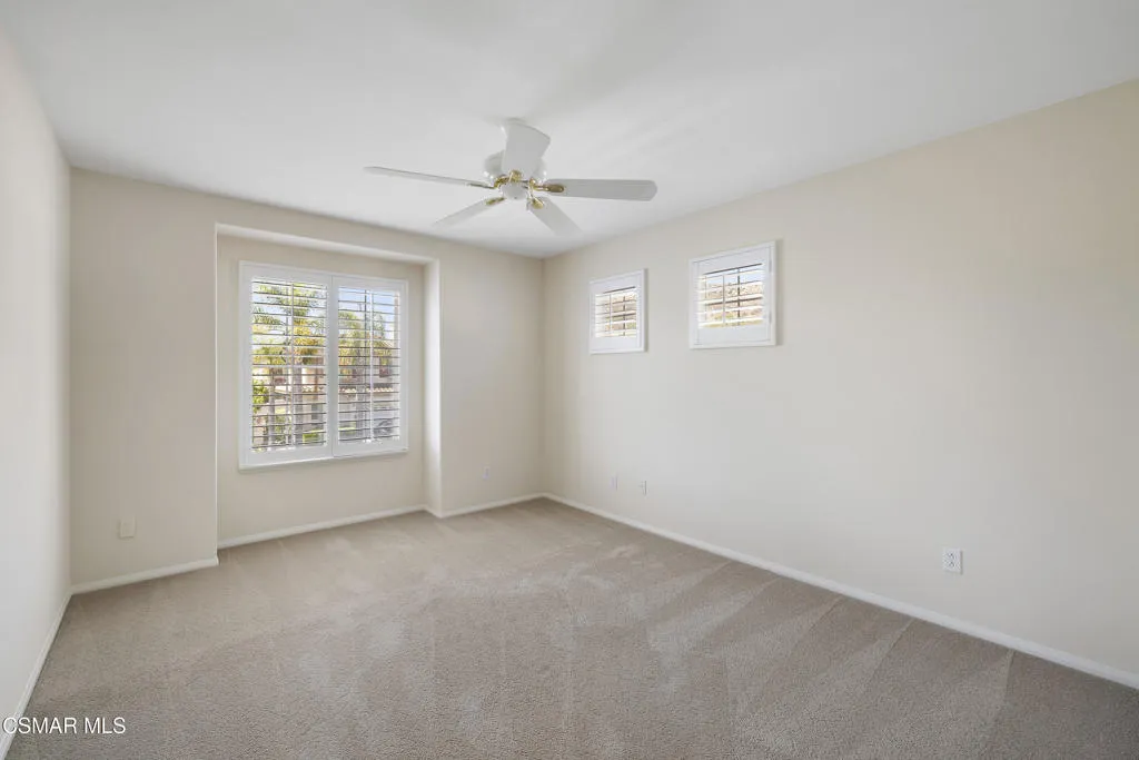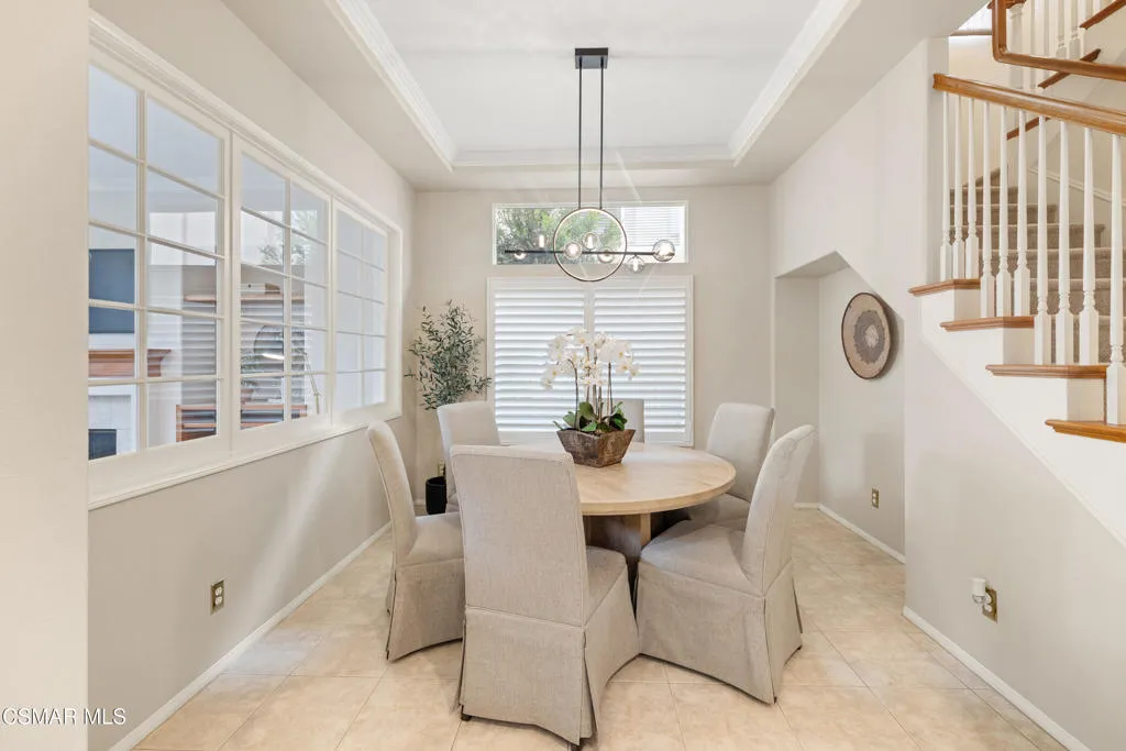 Welcome to this highly desirable Plan 3 Bellagio home, located in the prestigious gated community of Eagle Ridge in Lang Ranch. Situated on a quiet cul-de-sac street with picturesque views of the surrounding hills, this unique residence features a dual staircase, a downstairs 5th bedroom currently utilized as an office, and is the only model in the community that offers a full 3-car garage.The open and inviting floor plan offers spacious living and dining rooms–perfect for entertaining–that flow seamlessly into a bright family room with a cozy fireplace. The beautifully appointed kitchen includes an office nook/landing station, maple cabinetry, granite countertops, a center island, stainless steel appliances, a walk-in pantry, and serene views of the private backyard and open space beyond. A full bathroom with a shower is also conveniently located on the main level.Upstairs, you’ll find the luxurious primary suite, showcasing sweeping views and a spacious ensuite bathroom with dual granite-topped vanities, a soaking tub, a granite-tiled shower with a frameless glass enclosure, and an expansive walk-in closet with custom built-ins. Also upstairs are three generously sized secondary bedrooms with ample closet space, including one with a walk-in closet, along with a hall bathroom featuring a dual-sink vanity and a tub/shower combination. A dedicated upstairs laundry room includes a sink, washer, and dryer.Additional highlights include access to the community pool, spa, and playground, along with easy proximity to nearby parks, miles of hiking and biking trails, shopping, and award-winning schools. This is a rare opportunity to own a one-of-a-kind home in one of Lang Ranch’s most coveted neighborhoods!