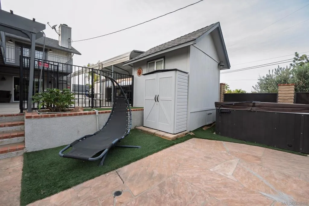 Extraordinary home and property, walking distance to the Vista Library and Vista Village as well a Park! Take advantage of the Wrap Around Deck to admire the hills and your private oasis backyard, featuring an in ground pool, separate spa, gazebo and landscaping! The home can be used for a single family, or has been enhanced to be two units, both with access to the back yard. Open the door to a formal entry, leading to the living room/dinning room, 2 bedrooms – one can be used as a 2nd (or 1st) Primary Suite with a wood burning fire place, French Doors that lead to the wrap around deck with views, walk in closet and Ensuite Bathroom with large shower. Walk through the living room to the Kitchen Doorway, enter and feel how open the Kitchen, walk in Pantry with space for a stacked washer/dryer, Eating Area combined with the Family Room with wood burning FP is. Bright and Airy, French Doors leading to the wrap around deck, stairs then leading to pool area. Downstairs a Large Primary Suite with loads of closet space, a separate office space, and large Primary Bathroom. Additional downstairs is a Den/Bedroom, additional bedroom with bathroom (doorway to pool area, great while entertaining in the backyard), kitchenette, washer and dryer. While no garage, there is a Large Metal Carport – RV storage or parking. Shed for storage with two additional storage areas. EV Charging at driveway parking area nearer to street. A great house for get togethers, entertaining, and parties! Must feel and see to believe!