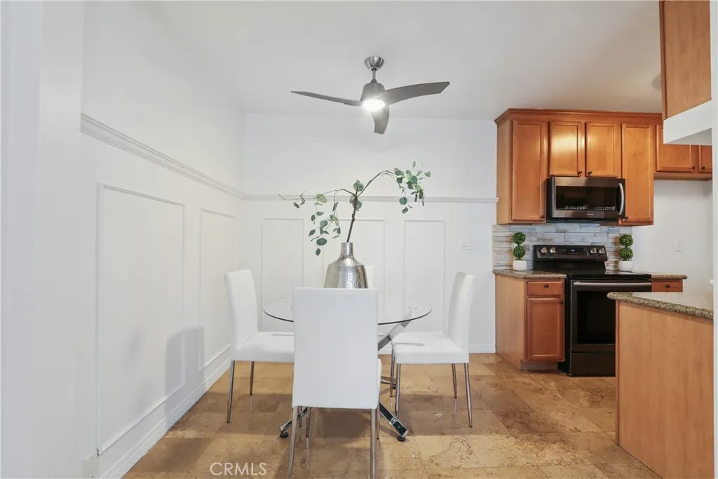 Enter through 2nd gate on Marigold**Rare top floor corner unit! This light filled move in ready condo offers open views, exceptional privacy, and a quiet setting in one of the most desirable locations within the community. Offering two bedrooms and two bathrooms the unit is thoughtfully designed for comfort and style, featuring real wood accents, elegant wainscoting, real wood kitchen cabinetry and beadboard detailing in the primary bedroom. Granite flooring in both the kitchen and bathrooms adds a refined and elevated finish. The residence has been updated with fresh interior paint, new carpeting with double padding for enhanced sound insulation, newer windows with tempered glass and hot and cold barriers, new light fixtures, a ceiling fan, and a new Siemens central electric panel. The remodeled bathroom showcases quality finishes, including a Kohler toilet. Located within a gated, resort style community surrounded by mature trees and landscaped gardens the amenities include multiple swimming pools, spa, renovated laundry and fitness facilities, a gym with yoga studio, barbecue areas, and a well appointed clubhouse. Conveniently situated close to the freeway, the community maintains a peaceful atmosphere without freeway or Sepulveda noise. This exceptional condominium offers a harmonious blend of privacy, quality upgrades, and resort style living in a highly sought after setting.