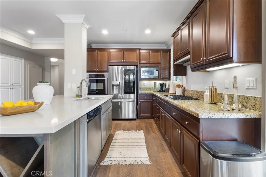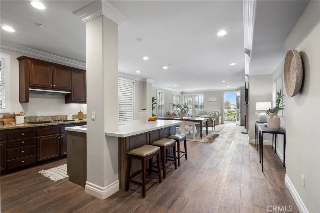: Primary Suite, Walk-In Closet(s), Granite Counters, High Ceilings, Open Floorplan, Recessed Lighting, Balcony, Eat-in Kitchen, Living Room Deck Attached, Crown Molding
