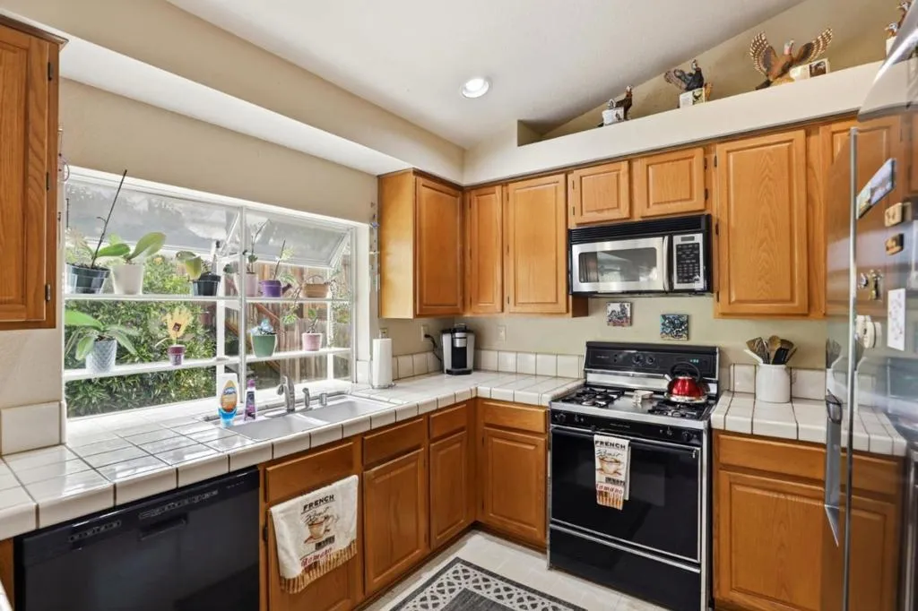 >>>>Seller to credit $10,000 towards interest rate buy down<<<< 3 car garage! No HOA Nestled in the city of Rocklin, this spacious 4-bedroom, 3 full bathroom home offers 1,988 square feet of comfortable living space. 1 bedroom and full bath down stairs. Dual pane windows. Comp roof is 5 years old. The kitchen is well-appointed with a gas cooktop, tile countertops, built-in oven, self-cleaning oven, microwave, and dishwasher, complete with hookups for an ice maker. Ideal for culinary enthusiasts, it also features an exhaust fan and garbage disposal. Private back yard boasts mature fruit trees. The home boasts high and vaulted ceilings, enhancing its open and airy feel. Flooring includes a mix of carpet and vinyl/linoleum, providing both comfort and durability. A separate family room provides ample space for relaxation, while the breakfast nook, dining area, and formal dining room offer multiple options for dining and entertaining. The laundry room is located inside the home with both 110V and 220V electricity hookups. The Rocklin Unified School District serves the area, providing excellent educational resources for residents. Additional features include central AC, ceiling fans, walk-in closet, and a 3-car garage. Enjoy cozy evenings by the fireplace in the spacious living area.
