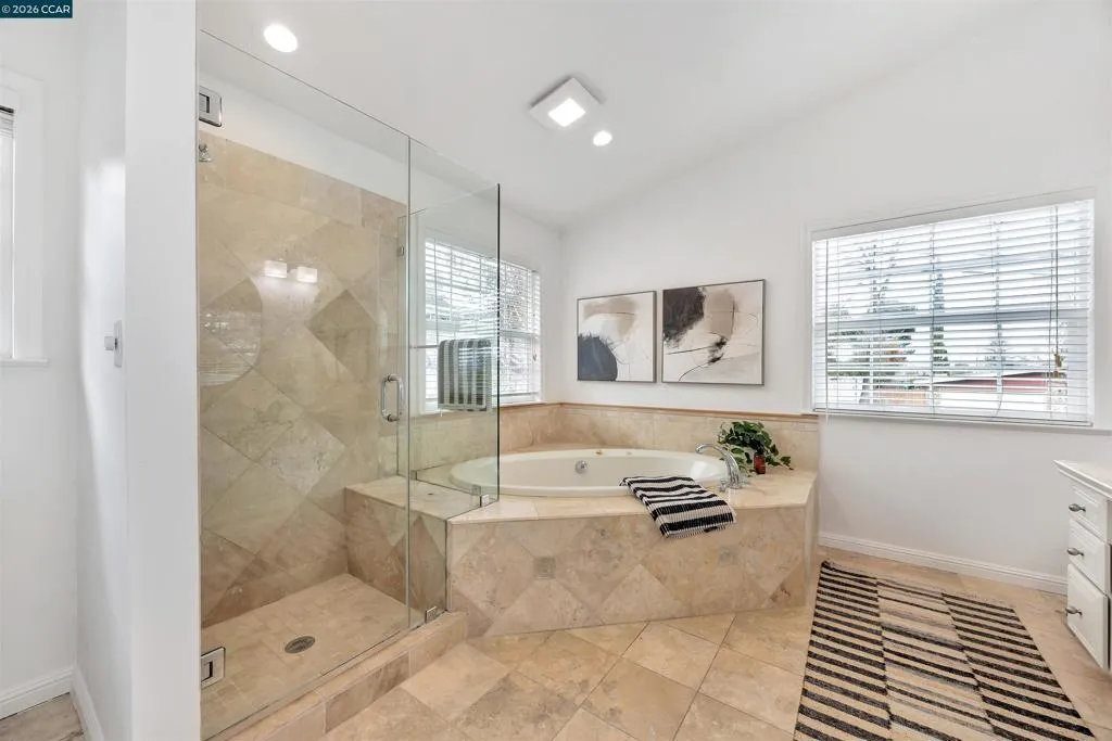 Welcome to 10 Vista Hermosa, a spacious 4BD/2BA single-family home on a sprawling lot, ideally located within walking distance to BART & downtown Walnut Creek shops & restaurants. This 1,763-sq-ft home features a remodeled kitchen with white shaker cabinets, quartzite counters, peninsula seating, & new stainless steel appliances, plus a breakfast nook & formal dining area. Bright living room with brick fireplace. Large primary ensuite offers vaulted ceilings, two closets, & a spa-like bath with walk-in shower, soaking tub & beauty station. Skylights & clerestory windows provide abundant natural light throughout. Major updates include tankless water heater, & newer roof (2022). Professionally landscaped yard features new sod with gopher wire, gas fire pit, new concrete driveway & patios, automatic irrigation & lighting, fruit trees, raised garden beds, drainage system, storage shed, & newer fencing & retaining walls. Prime location, expansive lot, & extensive upgrades make this home truly turnkey.