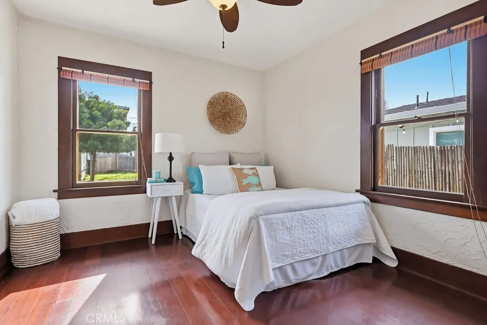 A San Pedro Classic! Step back in time to 1923 with this beautiful California Craftsman. It all starts with wonderful curb appeal thanks to the classic architecture and period-appropriate exterior color pallette. As you make your way through the gated front yard you’ll be greeted by the inviting covered front porch with wood plank floor and tapered columns. It makes the perfect spot for a morning coffee. As you enter the home into the main living space you will instantly feel as though you have traveled back in time. The hardwood floors, natural-wood windows and moldings along with the beautiful built-in buffet are a tribute to an era known as the Roaring ’20s. This large main living space features the living area, spacious dining area and plenty of windows to soak the area in natural sunlight. The charming kitchen continues the vintage theme with natural wood cabinetry, granite counters and stainless steel appliances. The bathroom has seen a few upgrades but still maintains a historic vibe. Flanking each side of the bathroom are the sunlit bedrooms that are decent sized and offer surprisinglly large closets. The rear yard is huge and offers unlimited potential to add onto the house, build an ADU, plant multiple gardens or create a backyard for entertaining. The 2 car garage is accessed by an alley and also includes the laundry hookups. In addition to the garage there’s a parking pad in front of the home and a gate that opens up into the backyard to provide room for RV parking. Other features worth noting include copper plumbing, foundation retrofit in 2000, new roof on home in July 2024 and a recently serviced furnace. This special property is just a short walk away from a few local hot spots that include Collossus Bakery, Chori-Man and the famous Busy Bee Market. Just a little further away is the West Harbor LA Waterfront development and the San Pedro coastline that includes landmark destinations like Pt Fermin Park, The Korean Bell, White Point Nature Preserve and Royal Palms Beach. This home’s location also enjoys one of the great San Pedro micro-climates where you get a milder ocean influence than if you were right on the water. If you’re looking for a modern vanilla home basking in white walls and sterile finishes, then this one isn’t for you. But if you’re looking for a little nostalgia and a chance to own a piece of San Pedro history, then you have found the one. Don’t miss it!!