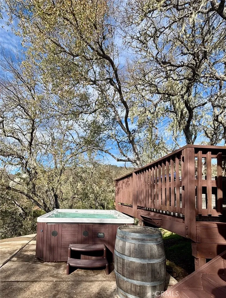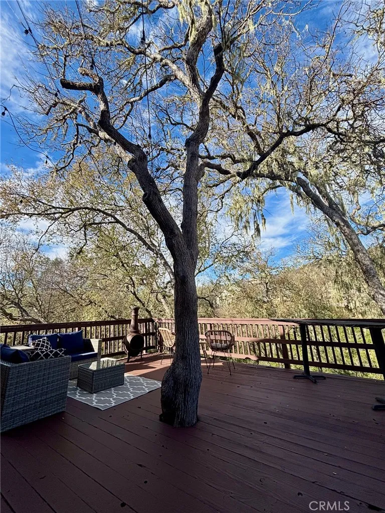 **Charming Oak Shores Log Cabin Retreat at Lake Nacimiento!** Nestled at the end of a quiet cul-de-sac in the desirable Oak Shores Community, this beautifully updated 2-bedroom, 2-bath log cabin captures the true Lake Nacimiento lifestyle. The property offers abundant level parking with ease of backing in boats, trailers, and all your lake toys—perfect for weekend getaways or full-time living. Inside, enjoy new flooring, fresh paint, updated bathrooms, and an upgraded kitchen with new appliances. The main entry level features the kitchen, dining area, and a full bathroom, while cozy wood-burning fireplaces in the living room and spacious upstairs bedroom create the perfect mountain-lodge ambiance. Step out onto the expansive back deck off the kitchen and take in gorgeous oak-studded greenbelt views—ideal for entertaining or relaxing after a day on the lake. This cabin delivers a year-round getaway feel in one of Lake Nacimiento’s most sought-after gated communities. Furnishings negotiable.