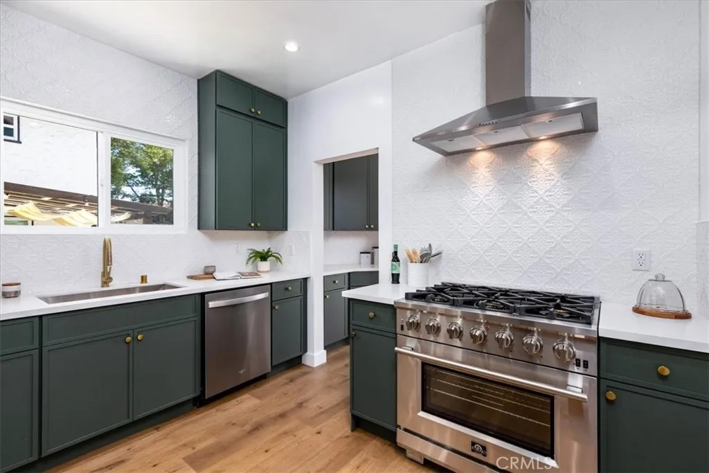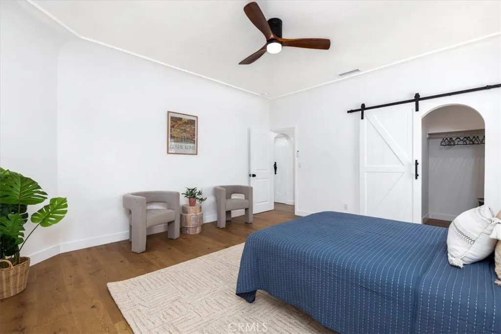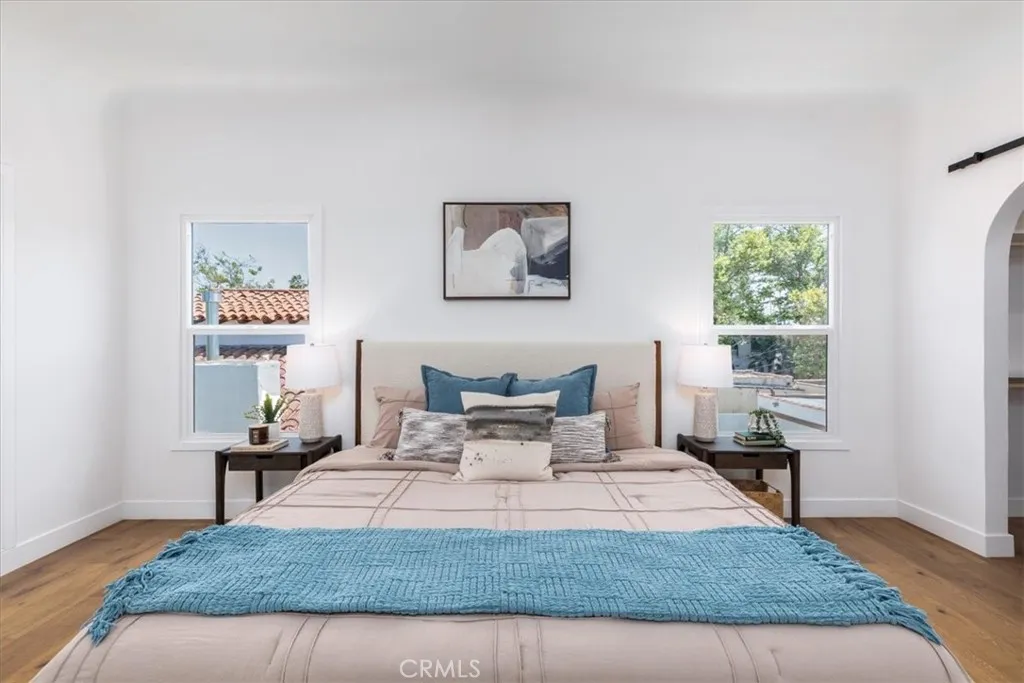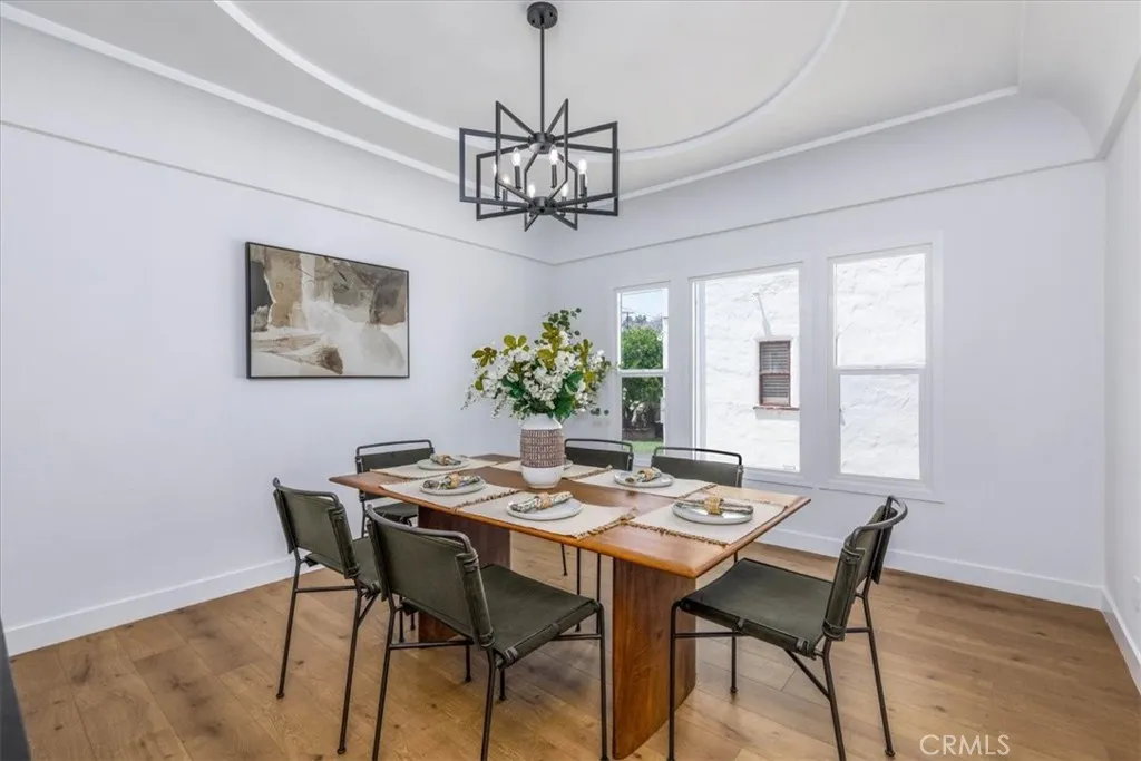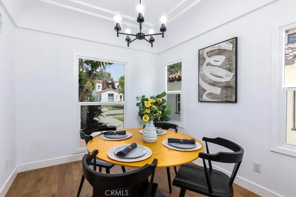 Discover the allure of old-world elegance seamlessly blended with contemporary luxury in this recently renovated Spanish retreat. Steeped in rich character details, this two-story haven exudes a sense of timeless charm. Upon entry, the grandeur of the home unfolds, revealing a spacious living room adorned with soaring barreled ceilings, a captivating decorative fireplace and expansive picture window, filling the space with light and warmth. Through an oversized archway, you’ll find yourself in a grand dining room ready for all the dinner parties, and beyond that a stunning designer kitchen. Boasting countertops, open shelving, and top-of-the-line stainless steel appliances, including a striking Forno Chef’s range, the kitchen serves as the heart of the home, seamlessly connecting indoor and outdoor living spaces through a convenient door leading to the backyard. The first floor offers a beautifully appointed bedroom and a thoughtfully renovated bathroom with gorgeous shower tiles, while a wood staircase leads to the second level, where two additional spacious bedrooms await. The primary suite impresses with its Juliet balcony and views of trees tops, walk-in closet, and a luxurious ensuite bath with dual vanity and a free-standing soaking tub. A guest bedroom and a dreamy hall bath adorned with chic terracotta shower tiles, terracotta-style floor tiles and vanity complete the upper level. Outside, the expansive yard features a lush lawn, ideal for leisurely outdoor gatherings, complemented by a DG pad perfect for al fresco dining, a gravel pad for intimate fire pit nights, to relax and unwind. Home features a 2-car garage with a spacious driveway offers plenty of additional parking. Conveniently located and easy access to Culver City, the eclectic eateries of West Adams, LAX, Sofi Stadium, and the beloved Kenneth Hahn Park. Updates include new heating + cooling system, new water heater, updated plumbing, electrical, windows and much more. Welcome home!