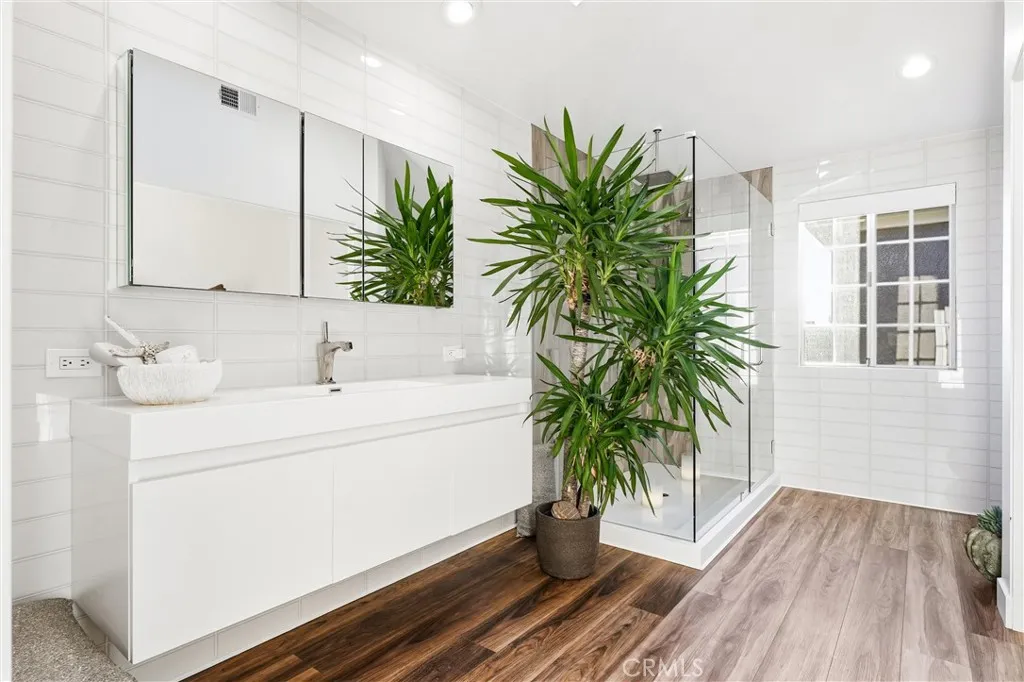 This fully reimagined end-unit residence in the coveted Le St Tropez community of Laguna Niguel has been completely redesigned with a refined, modern sensibility. Clean architectural lines, warm natural materials, and thoughtful finishes come together to create a home that feels sophisticated, welcoming, and entirely move-in ready. The main level offers a light-filled, open living space enhanced by soaring ceilings, a skylight, recessed lighting, and all new wide-plank flooring. A sleek fireplace with fire glass anchors the room, while custom steel, glass doors reveal a striking built-in wine display and Samsung wine fridge. The kitchen has been rebuilt from the ground up, featuring custom dark stained oak cabinetry, leather-finish stone surfaces, hidden Thermador refrigeration, and all virtually newer Samsung appliances. A permitted pass-through bar seamlessly connects the kitchen to the living room. The once closed off kitchen has been opened to allow for additional seating and a large dining area, creating effortless flow for entertaining. New slider and windows on the first floor bring in abundant natural light and open to a private, backyard that is enclosed perfect for those summer nights surrounded lush greenery. Framed by a Meranti Indonesian hardwood fence, this serene outdoor space offers a peaceful extension of the home, ideal for alfresco dining, morning coffee, or quiet relaxation. Upstairs, three well-proportioned bedrooms continue the home’s cohesive design. The primary suite is a true retreat with, featuring a spa-inspired bathroom with a skylight, glass-enclosed walk-in shower, modern fixtures, refined finishes, and a private balcony for moments of calm and reflection. All bathrooms have been completely remodeled with complementary materials and Italian mirrors with adjustable lighting, blending warmth with a contemporary aesthetic. Additional upgrades include an updated high-efficiency HVAC system with enhanced ducting and air-quality improvements, ensuring year-round comfort and efficiency. Residents of Le St Tropez enjoy resort-style amenities including a pool, spa, and tennis courts, along with a nearby beach trail offering a scenic connection to the Salt Creek coastline. Whether you walk the trail or drive, you are minutes from Dana Point Harbor, Salt Creek Beach, luxury resorts Waldorf Astoria and Ritz Carlton, Monarch Beach golf, an 18-hole, Robert Trent Jones Jr. designed oceanfront course and Dana Point’s Lantern District.
