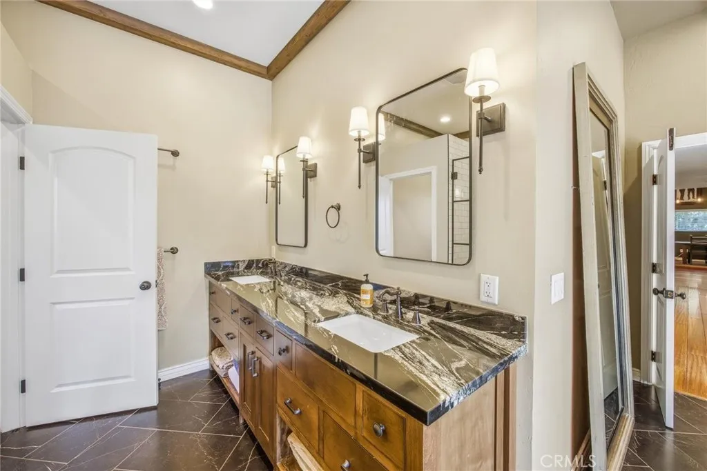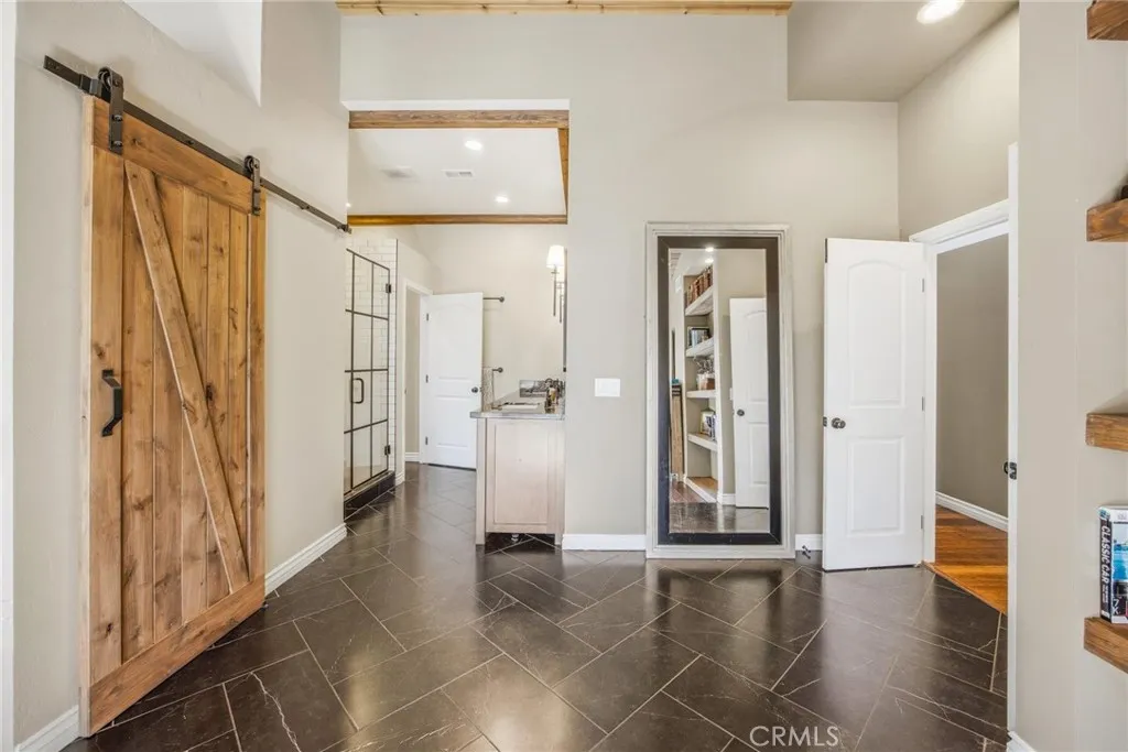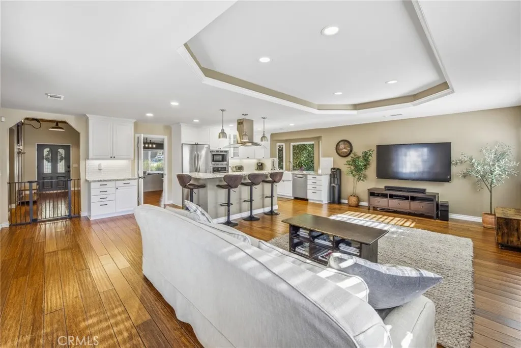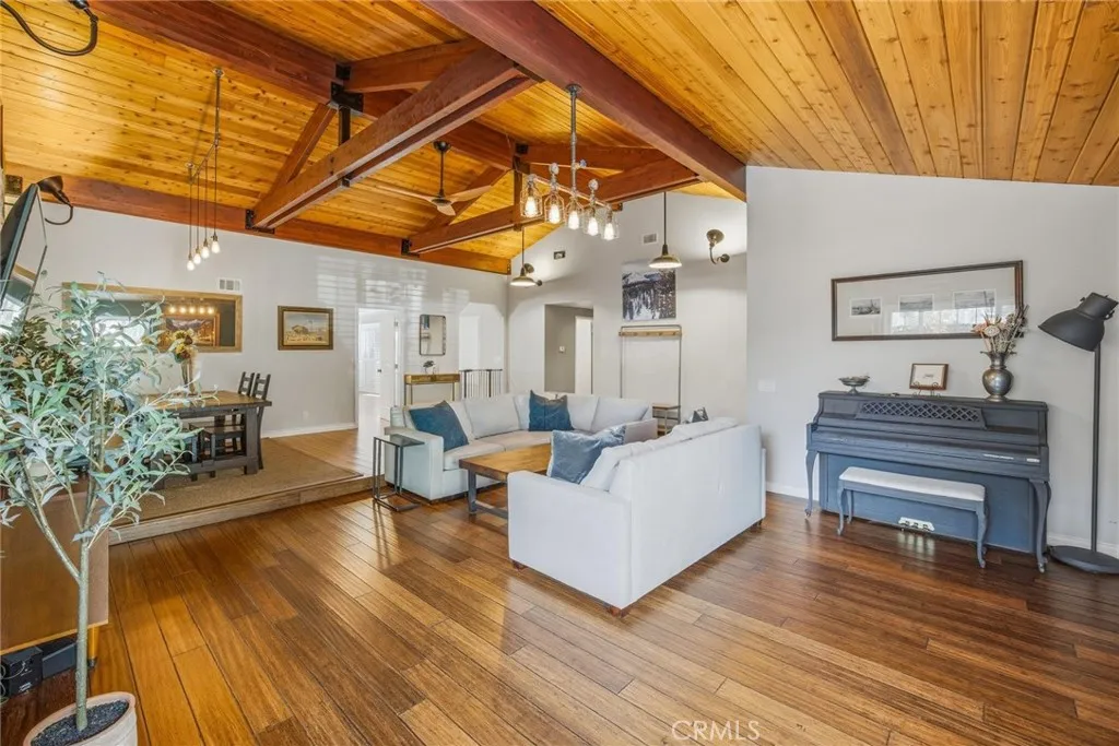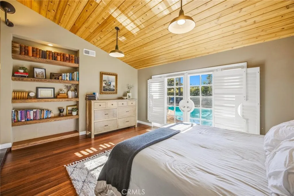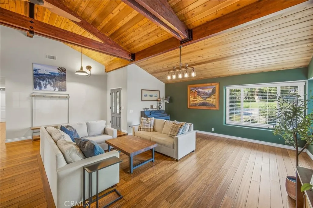 Stunning Single Story Industrial-Rustic Retreat. This beautifully remodeled four bedroom , single story home blends warm, rustic character with sleek industrial design. Vaulted wood ceilings with exposed beams and rich wood floors set the tone for this custom remodel. The open-concept kitchen flows seamlessly into the over sized family room, anchored by a generous center island with striking white granite and stainless appliances-perfect for entertaining and every day living. The expansive primary suite is a true sanctuary, featuring a spa-inspired main bath and abundant space to unwind. Additional bedrooms are well proportioned and versatile, ideal for family, guests or home office. Step outside to a private backyard designed for both relaxation and function, featuring a gated pool, storage shed and a separate creative studio or retreat. Located in a highly desirable neighborhood with top rated schools, a nearby park, and convenient access to shopping and community amenities, this home offers the perfect balance of style, comfort and location.