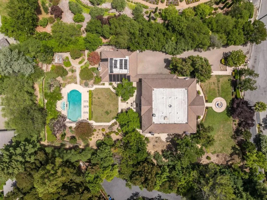Elegant Mediterranean Classic two-story estate blending old-world charm with modern comfort. Located at the end of a quiet cul-de-sac for exceptional privacy, the home features Roman columns, ornate ceilings, and an open floor plan. Main level includes formal living and dining rooms with butlers kitchen, mahogany-paneled library, office suite, and kitchen-family room overlooking the lush backyard. Five generously sized bedroom suites upstairs, including an expansive primary suite with sitting area. Resort-style backyard with pool, spa, and home theater. Minutes to Sand Hill Road, Stanford, and major tech campuses. Top Los Lomitas schools.