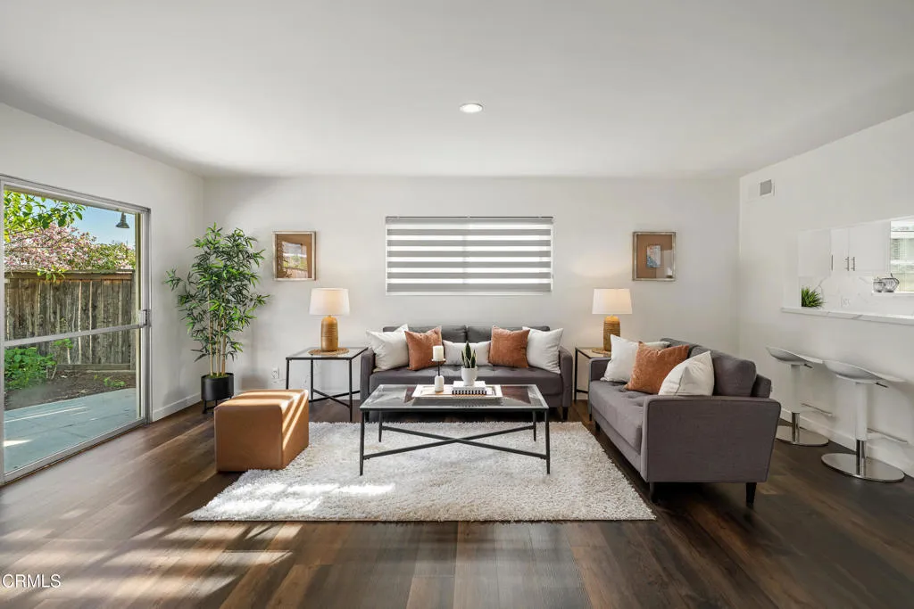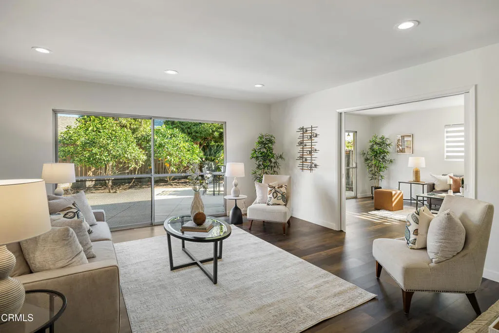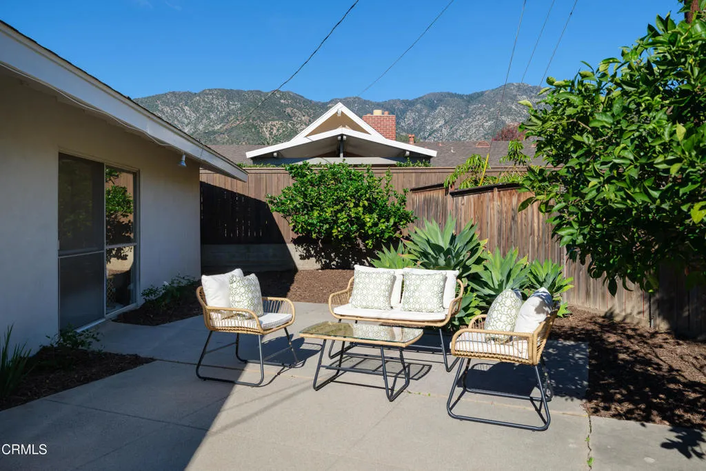 Set within a beautifully manicured Monrovia neighborhood with close proximity to the foothills & sweeping views south across the valley, this inviting residence offers comfort, functionality & a seamless indoor-outdoor connection. The driveway leads to a charming covered front porch & double-door entry. Inside, wood-look flooring flows throughout the home & recessed lighting creates a warm, cohesive feel in the main living spaces. Immediately to the right, the home opens to the dining area & updated kitchen, anchored by a raised fireplace & concrete bar-style countertop, perfect for casual gatherings or everyday living. The kitchen features Calacatta Quartz countertops, updated cabinetry, stainless steel appliances, including a gas range, range hood & a bay window above the sink. A direct door connects to the attached 2-car garage, which includes laundry & additional storage. Just beyond the kitchen, the family room offers recessed lighting, a pass-through window with counter seating ideal for entertaining & a sliding glass door that opens to the backyard patio. Pocket doors connect the family room to the living room, allowing for both open flow & private separation when desired. The living room is highlighted by a raised stone hearth fireplace, recessed lighting, wood-look flooring & another sliding glass door that enhances natural light & access to the outdoors. The backyard features a paved patio surrounded by mature fruit trees, creating a tranquil space for dining al fresco, relaxing, or hosting gatherings. A hallway off the living room leads to 3 bedrooms & 2 bathrooms. The first bedroom offers dual-pane windows & a generous closet. A second well-sized bedroom sits at the end of the hall, also featuring dual-pane windows. A full hallway bathroom includes a tub & shower combination, a dual-sink tiled vanity, recessed lighting & convenient linen storage nearby. The primary suite is privately situated on the opposite side of the hallway & features a spacious closet & a sliding glass door opening directly to the backyard patio. The ensuite bathroom includes an additional closet, oversized single-sink tiled vanity, recessed lighting & a tiled walk-in shower. With its thoughtful layout, inviting outdoor spaces, desirable Monrovia location near the foothills & moments from Old Town Monrovia’s shops, dining & entertainment, this home offers an exceptional opportunity to enjoy both comfort & scenery in a well-established neighborhood.
