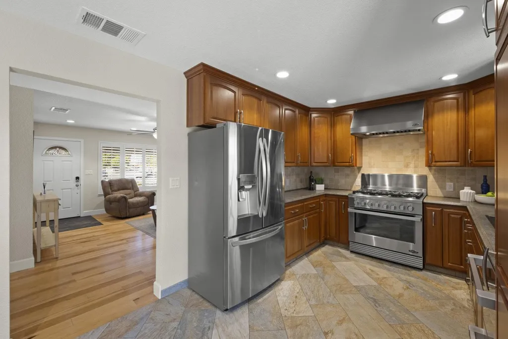 Fully remodeled in 2016 with so many updates! Owned solar with a 5.5 KW system keeps your electric bill impressively low. ADU potential with expansion of the 12’x18’ building out back which currently has electrical and nearby sewer line. All major systems were updated in the renovation including electrical, plumbing, heating, AC, and roof. The kitchen is a chef’s delight with commercial-grade appliances, 6 burner range, double dishwasher and Italian porcelain floors with radiant heating underneath for warm toes on cold mornings! Step outside into your own backyard retreat to find a stunning 20’x20’ pergola with remote controlled lighting and motorized privacy screen, built-in gas fireplace, tranquil fountain, raised garden beds, mature grapevines, citrus trees and berry plants. It’s also hot-tub ready with a dedicated service panel in place. Come and see it yourself! This turnkey home is ready for you to enjoy both inside and out.