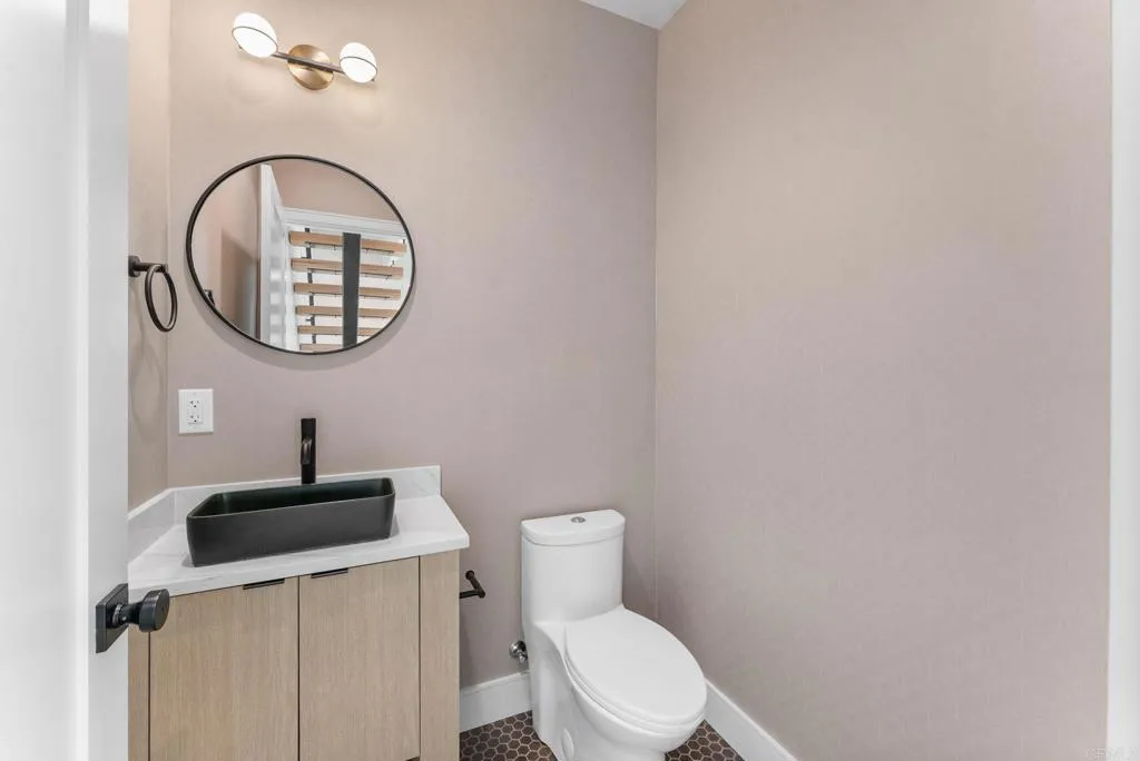 4212 Tonopah is a new construction luxury townhome in the Bay Park neighborhood of San Diego. 4212 is a corner unit with a stunning panoramic view of the bay and beyond! Perfect for enjoying sunsets and summertime fireworks. Features an open concept layout with designer touches, including a large kitchen with bar seating, solid surface quartz countertops / matching backsplash, and custom inset European slab cabinets. Brushed gold kitchen hardware, Thermador appliances, custom glass wall, floating iron staircases, engineered hardwood floors, and stylish lighting fixtures. The space is bathed in natural light from oversized windows and floor-to-ceiling balcony slider doors. Spacious bedrooms all with on-suite bathrooms. The large private garage (2 side by side parking spots) is set up for EV charging and home comes with owned solar. Comes with an upgraded home warranty (2-10 Home Warranty). Great central location provides easy access to transit, local dining, coffee shops, and the expansive Mission Bay Park, a 4,600-acre oasis perfect for biking, jogging, picnicking, and water sports. The expanded Blue Line (light rail), short walk away, connects to Downtown, UCSD, SDSU, UTC, Sorrento Mesa and beyond. Less than a 10 minute bike ride to USD. Project is VA approved.