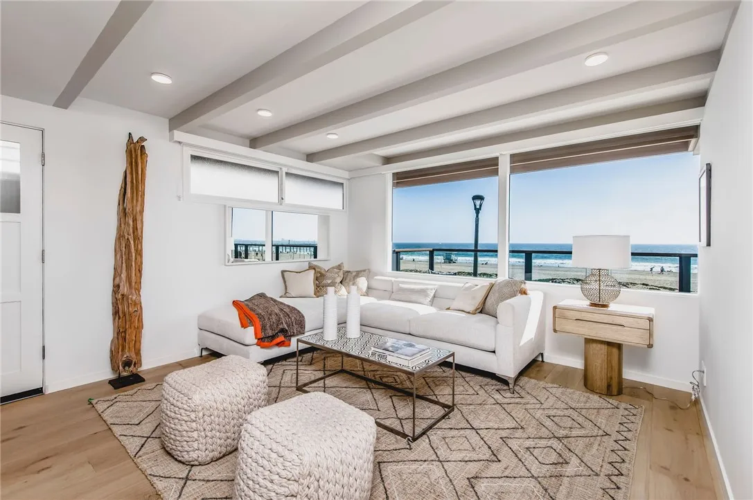 Located on The Strand just steps away from the sand and surf, this mid-century modern home offers sweeping ocean views, beautiful sunsets and the ultimate beach lifestyle.
