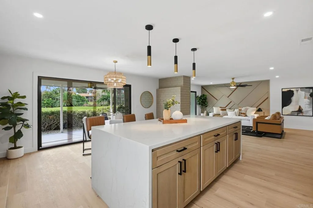 Welcome to resort-style living on the golf course! This bright and beautifully updated home features a brand-new designer kitchen with sleek cabinetry, premium appliances, and stylish finishes throughout. New flooring and refreshed bathrooms elevate the modern feel, while expansive folding doors create seamless indoor-outdoor living and open to breathtaking golf course and view panoramas. Sun-filled interiors, stunning sightlines, and thoughtful upgrades make this home perfect for both everyday living and entertaining. A rare opportunity to enjoy tranquil views, modern design, and true Southern California lifestyle living.