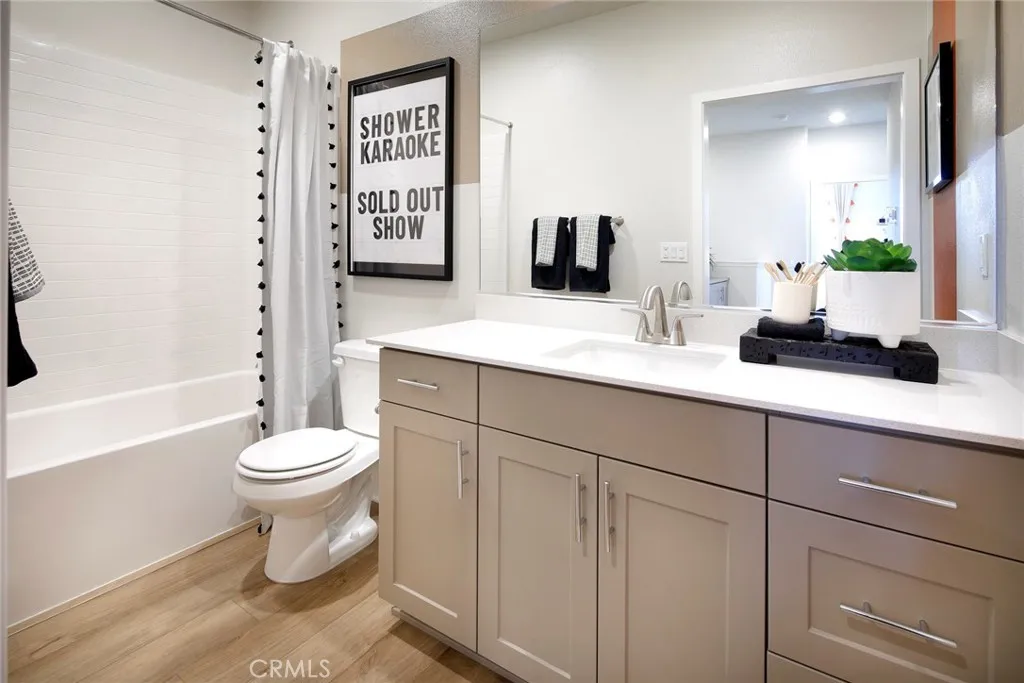 White kitchen cabinets with quartz countertops featuring a full backsplash. LVP flooring in the kitchen, great room and all wet areas. Stainless steel LG appliances. Single basin kitchen sink along with square sinks in the bathrooms. Upgraded LED lighting through the home, ceiling fan prewires in all bedrooms. Upgraded fixtures in all locations.