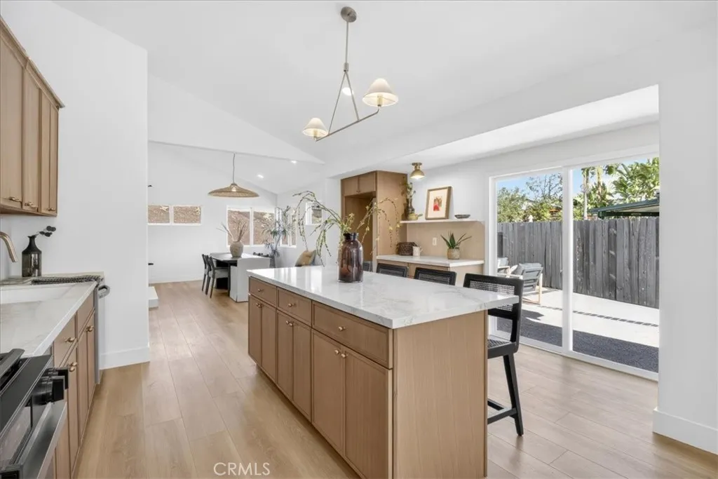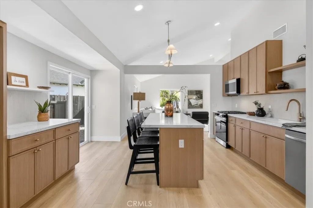 Beyond the kitchen lies a versatile multi-use space, perfect as a second living area, formal dining room, or flexible family retreat. Abundant natural light pours in through energy-efficient dual-pane windows and sliders with fresh glazing.