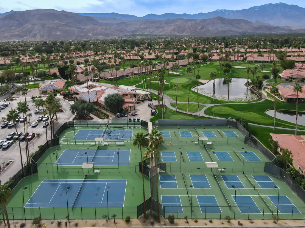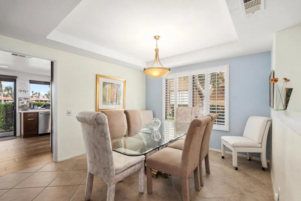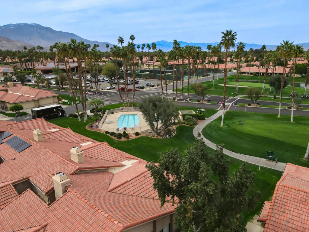 Welcome to your dream retreat! This upgraded 2,051 sq. ft. El Grande model condo offers 3 generous bedrooms and 3 stylish bathrooms, blending comfort with elegance. Soaring ceilings and thoughtfully placed solar tubes fill the home with natural light, creating a bright, open atmosphere.Step out to the tiled patio and take in the serene view of golfers teeing off on a scenic 210-yard par 3. Just a short stroll away, you’ll find the sparkling community pool–perfect for sunny afternoons. Inside, a recently updated HVAC system ensures year-round comfort.The kitchen, fully remodeled just 3 years ago, is a chef’s delight with modern cabinetry, stainless steel appliances, and a sleek, contemporary design.Enjoy a lifestyle of convenience with the clubhouse just steps away, featuring dining, card games, pickleball, tennis, and a well-equipped fitness center. Chaparral Country Club’s prime Palm Desert location puts fine dining, shopping, and entertainment right at your fingertips.From nearly every angle, you’ll be captivated by sweeping mountain views–best enjoyed while relaxing on your private patio, listening to the gentle rustle of palm fronds.