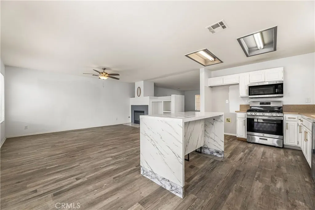 Beautiful 4-bedroom/2 bath home. Updated with two-tone interior paint and waterproof Laminate flooring throughout. The open and airy layout features a living room, formal dining area, and a separate family room complete with a fireplace. The well-appointed kitchen includes granite countertops, a center island, and abundant cabinet and workspace. The spacious primary suite offers a walk-in closet with built-ins, ceiling fan, direct backyard access, and a tastefully upgraded private bathroom with granite countertop and modern fixtures. Three additional bedrooms, a full hall bathroom, laundry room, and direct-access two-car garage complete the home. Conveniently located near schools, parks, and shopping.