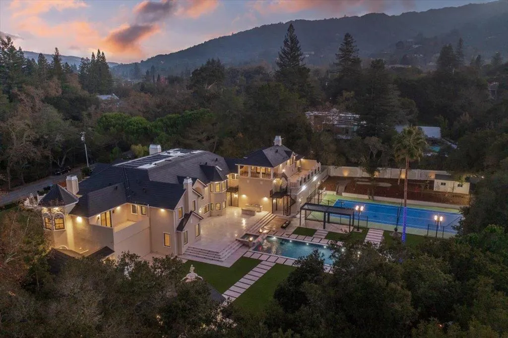 Located in the heart of Silicon Valley, this extraordinary Monte Sereno estate represents a rare fusion of grand scale, refined elegance, & unparalleled convenience. Recently transformed through a $10M+ comprehensive renovation, the residence evokes the timeless grandeur of a stately European estate. Set on 1.37 pristine, flat acres, it offers approximately 17,000 square feet of impeccably curated living & storage space beneath a brand-new $1M Tesla solar roof. The main residence features ten bedrooms & eight bathrooms, complemented by a private guest house & separate apartment. Resort-caliber amenities abound, including a ten-car garage, underground shooting range, indoor basketball & racquetball court, USTA-regulation tennis court, resort-style lap pool & spa, expansive great room, home theater, private elevator, two formal libraries, and a gym/nursery. Taken down to the studs, every detail has been reimagined w/ uncompromising quality new Jeld-Wen windows & doors, all-new appliances, plumbing, & electrical systems. Secluded within a private enclave & surrounded by other prestigious estates, the property offers sweeping mountain & city light views. This is a truly iconic Silicon Valley offering where sophistication, scale, & location converge to create an exceptional lifestyle.