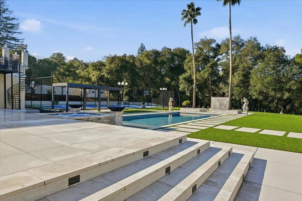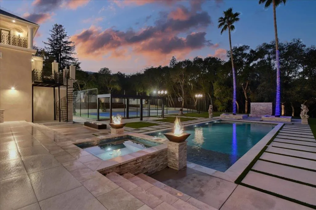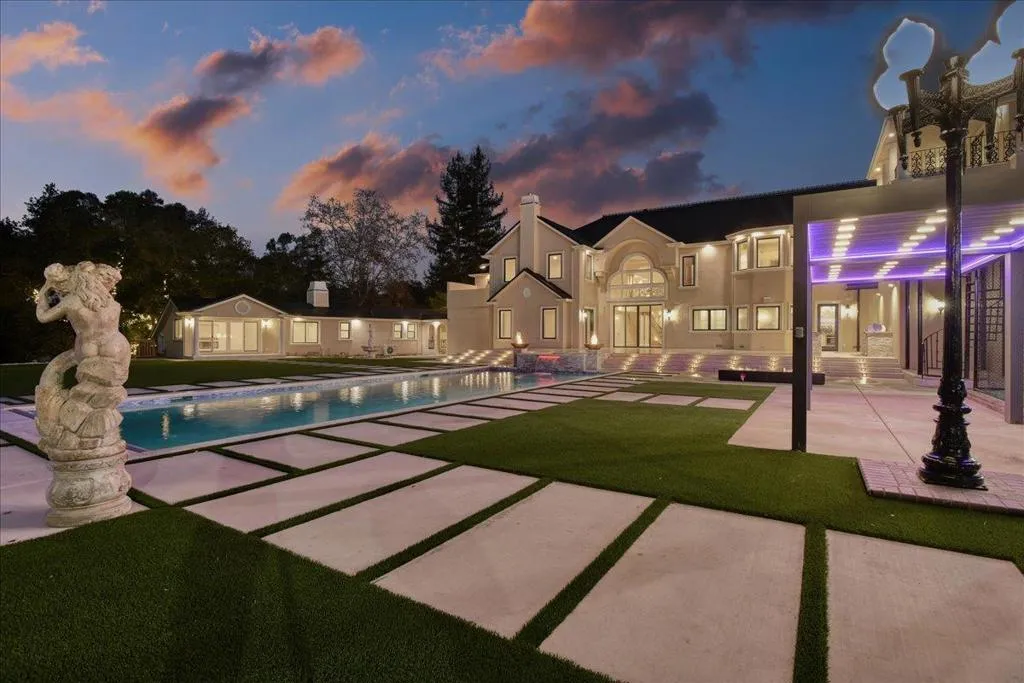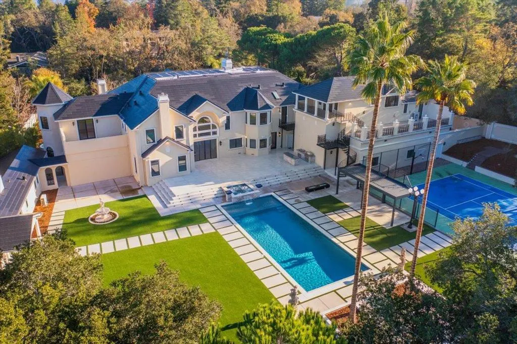 Located in the heart of Silicon Valley, this extraordinary Monte Sereno estate represents a rare fusion of grand scale, refined elegance, & unparalleled convenience. Recently transformed through a $10M+ comprehensive renovation, the residence evokes the timeless grandeur of a stately European estate. Set on 1.37 pristine, flat acres, it offers approximately 17,000 square feet of impeccably curated living & storage space beneath a brand-new $1M Tesla solar roof. The main residence features ten bedrooms & eight bathrooms, complemented by a private guest house & separate apartment. Resort-caliber amenities abound, including a ten-car garage, underground shooting range, indoor basketball & racquetball court, USTA-regulation tennis court, resort-style lap pool & spa, expansive great room, home theater, private elevator, two formal libraries, and a gym/nursery. Taken down to the studs, every detail has been reimagined w/ uncompromising quality new Jeld-Wen windows & doors, all-new appliances, plumbing, & electrical systems. Secluded within a private enclave & surrounded by other prestigious estates, the property offers sweeping mountain & city light views. This is a truly iconic Silicon Valley offering where sophistication, scale, & location converge to create an exceptional lifestyle.