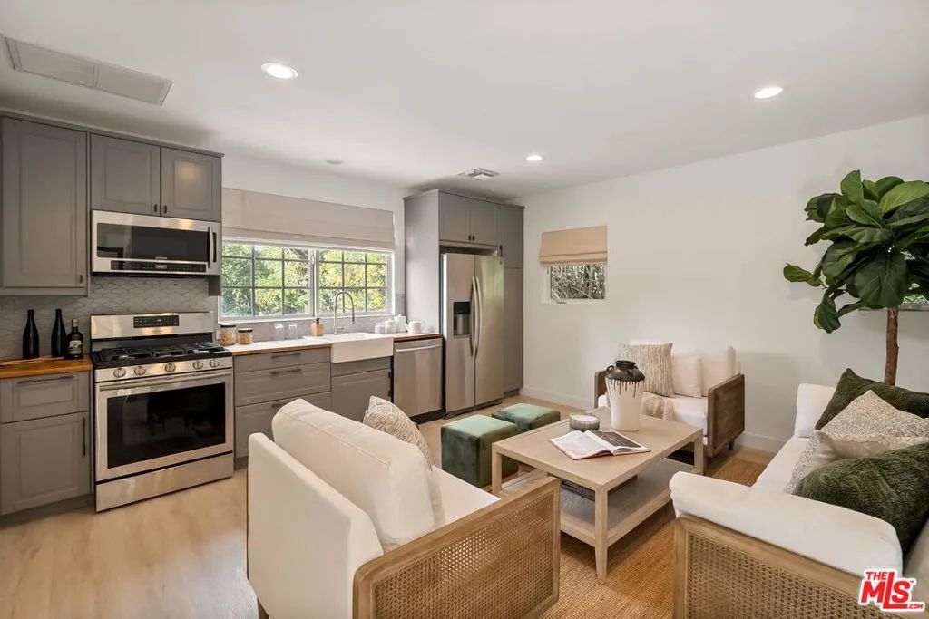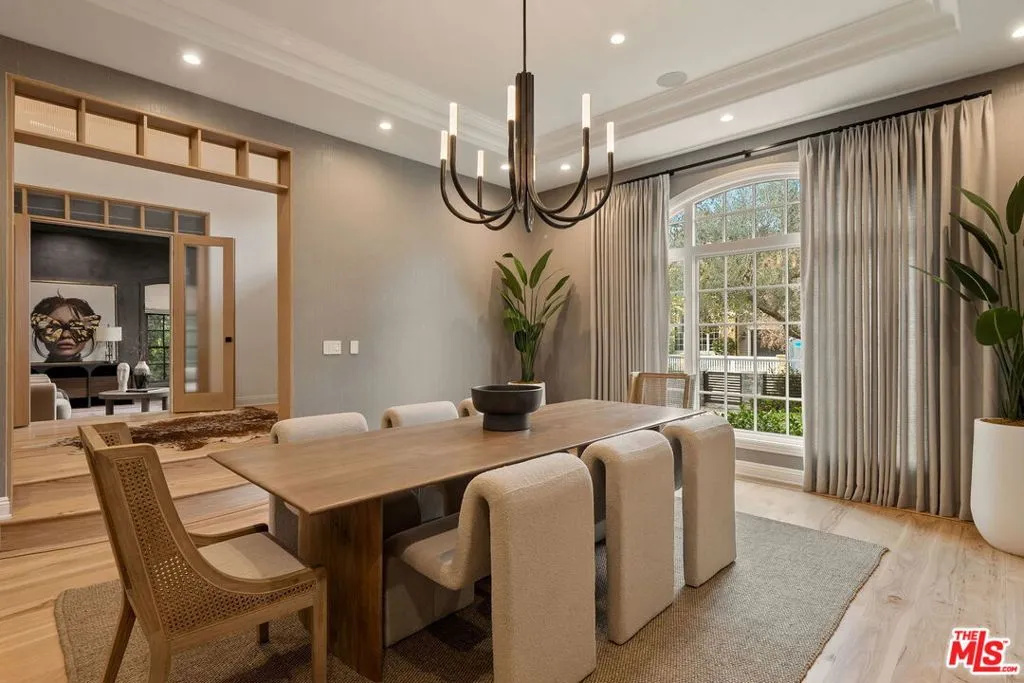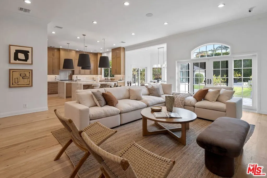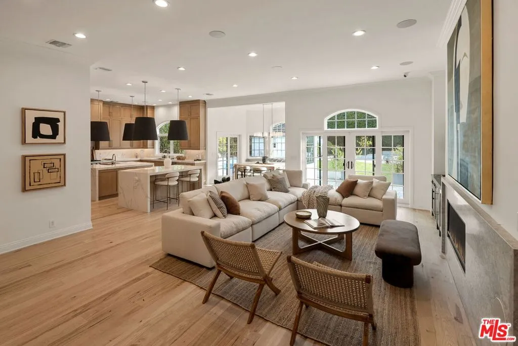 Located on one of Brentwood’s most coveted streets, Homewood Road, this newly reimagined estate offers a sophisticated balance of timeless design and effortless California living. Thoughtfully renovated by the current owner, the residence spans approximately 6,800 square feet on an expansive, flat 18,359-square-foot lot. A grand double-door entry opens to a sun-filled foyer with soaring 23-foot ceilings, immediately establishing the home’s sense of scale and light. The main level is designed for both refined entertaining and everyday comfort, featuring a formal dining room overlooking the gardens, a dedicated theater, and an expansive great room where a double-island chef’s kitchen seamlessly connects to the family room and outdoor living spaces. The kitchen is appointed with custom wood cabinetry, marble countertops, professional-grade appliances, and a walk-in pantry, while a window-wrapped breakfast nook enjoys tranquil views of the pool and grounds. Two generously sized bedrooms and a full laundry room complete the main floor. The upper level hosts four en-suite bedrooms, each with walk-in closets, including a luxurious primary suite with a private sitting area, office, and dual walk-in closets, one currently configured as a fitness studio. Set behind lush landscaping, the resort-style backyard features a sparkling pool and spa, multiple outdoor lounging and dining areas, and a broad lawn ideal for recreation. Additional amenities include a private pickleball court and a fully permitted two-bedroom, one-bath guest house with its own laundry. Situated within the coveted Kenter Canyon Elementary School district and surrounded by Brentwood’s finest estates, this exceptional property offers a rare combination of scale, privacy, and modern elegance in one of Los Angeles’ most desirable neighborhoods.