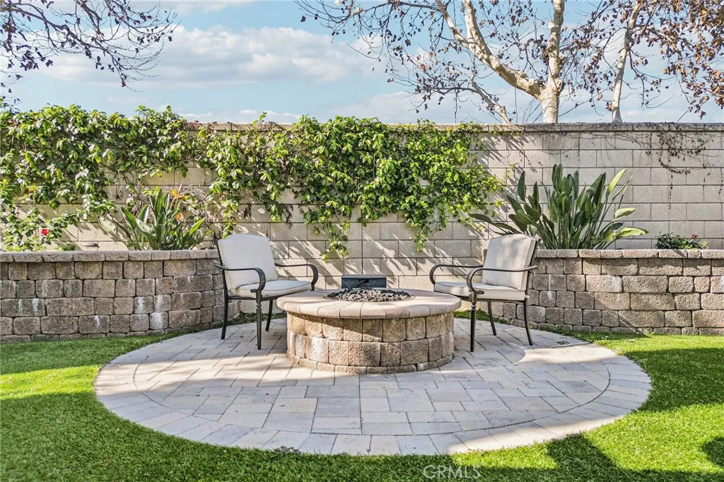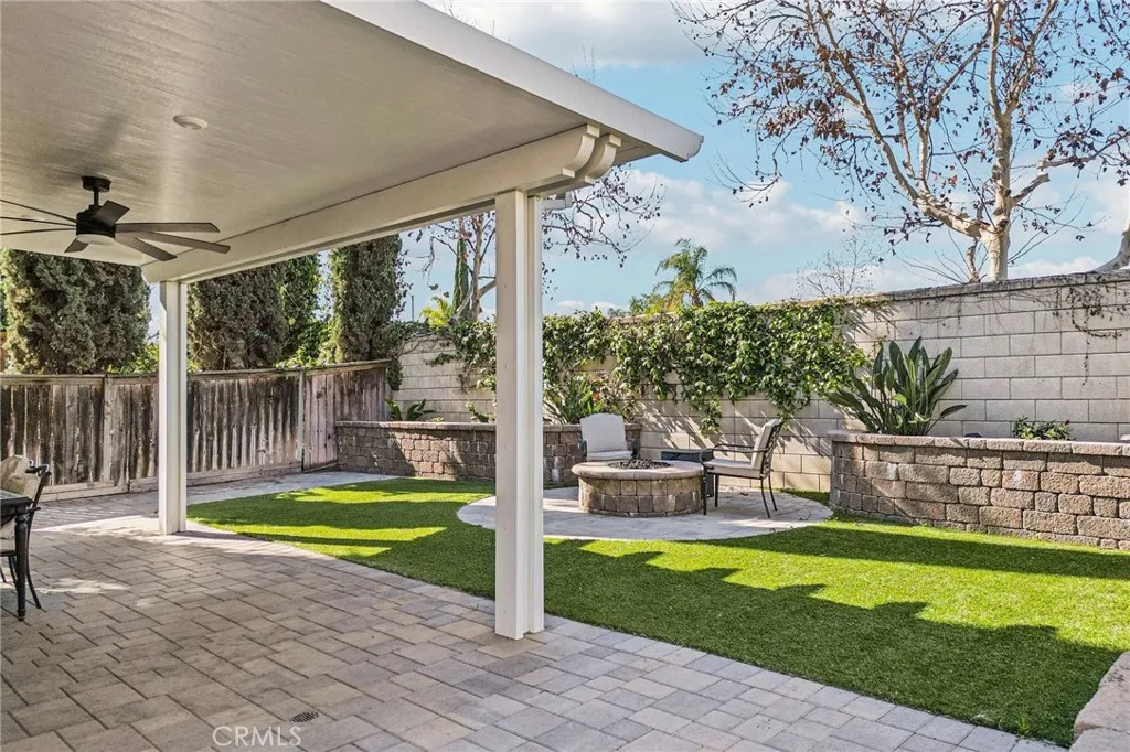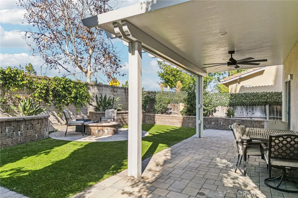 Step outside to a professionally designed backyard complete with a patio cover, fire pit, brick pavers, and new fencing—perfect for outdoor living, entertaining, and enjoying Southern California evenings.