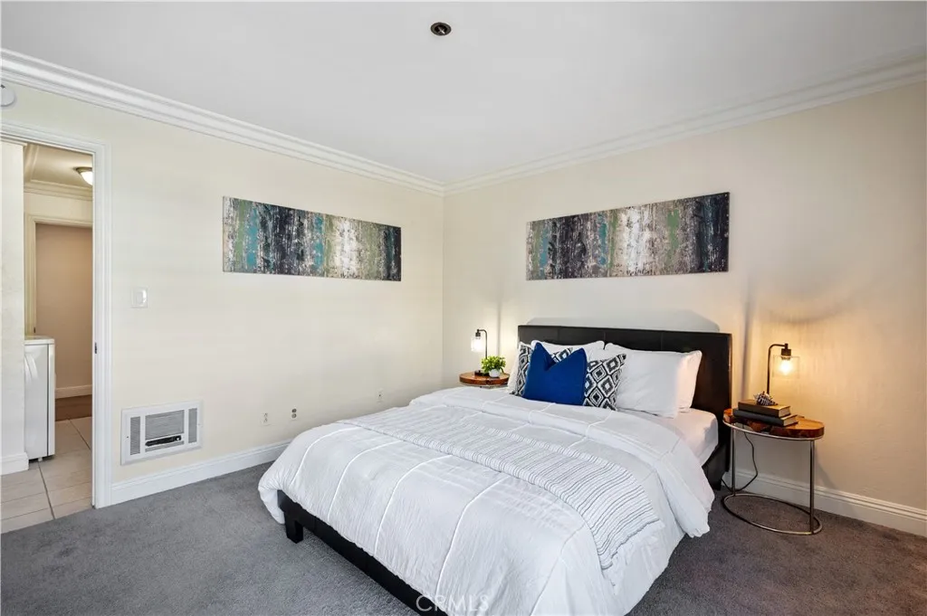 The spacious primary suite offers dual closets and an ensuite bath, while the secondary bedroom is filled with natural light and access to the second bathroom. Additional highlights include ample closet space, in-unit laundry, and beautiful floors throughout in the main areas with plush carpet in the bedrooms.