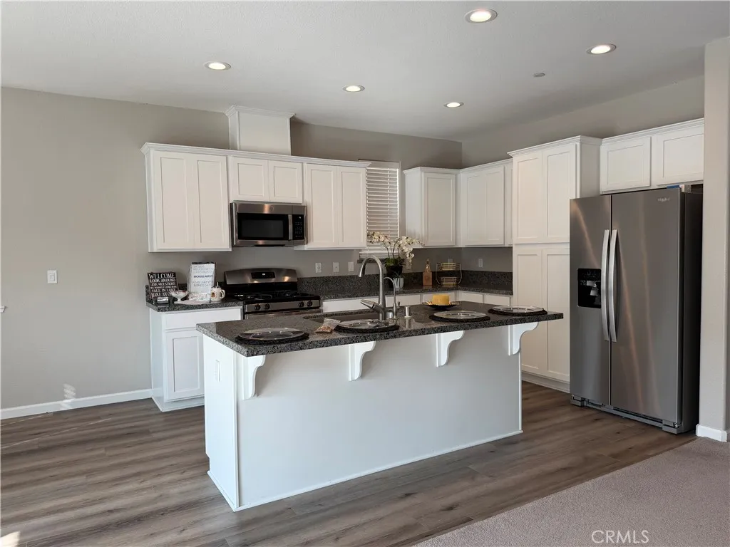 Welcome to this beautifully maintained, move-in-ready home that feels just like a new build—only better, with all the extras already done for you. Featuring 4 bedrooms, 3 full bathrooms, and a spacious upstairs loft, this home offers a thoughtful and functional layout with only one bedroom downstairs, complete with a full bathroom and a generously sized walk-in closet—perfect for guests or multigenerational living. The entry welcomes you with laminate flooring and wide, sizeable hallways that flow into an open island kitchen showcasing beautiful white cabinets, matching appliances, and a refrigerator included. Laminate flooring continues through the kitchen and bathrooms, while all bathrooms are full and ready to use, including a large primary bathroom designed for comfort. Upstairs you’ll find three bedrooms, a loft, and a convenient laundry room upstair including the washer and dryer. Blinds are installed throughout the entire home, and ceiling fans are included in all bedrooms except one upstairs. Outside, enjoy a landscaped front yard, a low-maintenance backyard with multiple fruit trees, and a 2-car garage. Additional highlights include a durable tile roof, a paid water softener, a Tesla charger, and leased solar with a very low monthly payment. This home truly combines modern comfort, efficiency, and pride of ownership—ready for you to move in and enjoy.