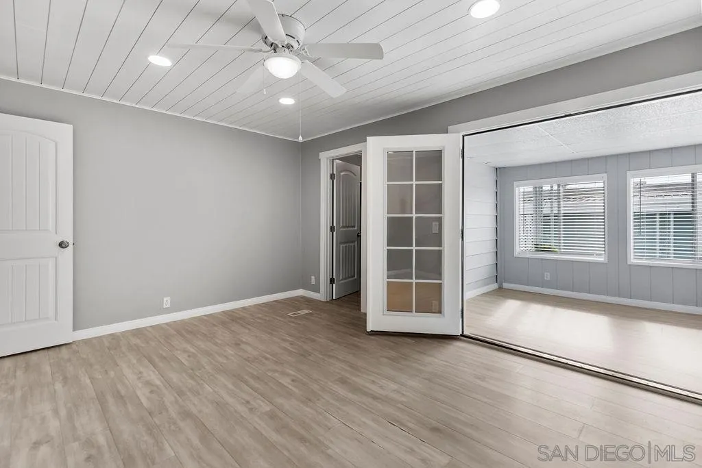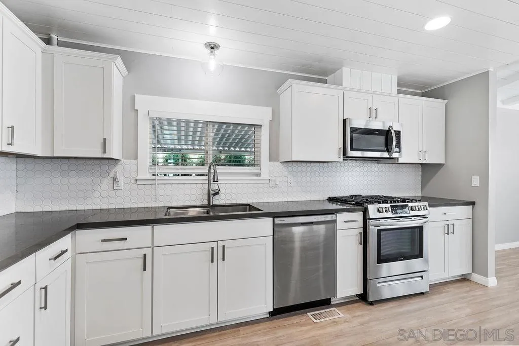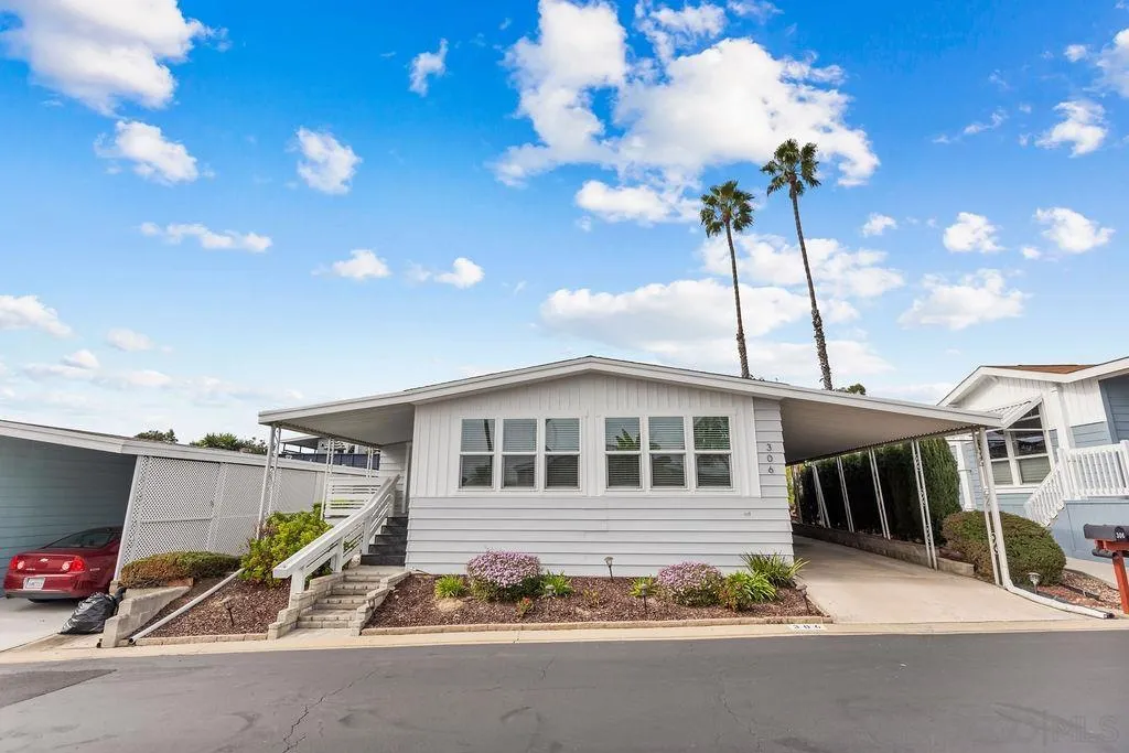 Stunning updated home with vaulted ceilings and easterly mountain views! Beautifully remodeled kitchen features a large quartz island w/ storage and stainless steel appliances. The open floorplan of the kitchen, living and dining areas allow plenty of space to entertain. Primary suite has dual sinks, soaking tub, step in shower, large linen closet, walk in closet & access into California room. Extra large utility room w/ oversized broom closet. Carport fits up to 2 vehicles and has a large secured storage. This unit is also located near guest parking spaces. Palomar West is a 5-star park with resort-style living with rent control & no property taxes on this home! This is a non-profit, 55+ park with a very active & social atmosphere – heated pool, spa, clubhouse, gym, tennis courts, pickleball and putting green.