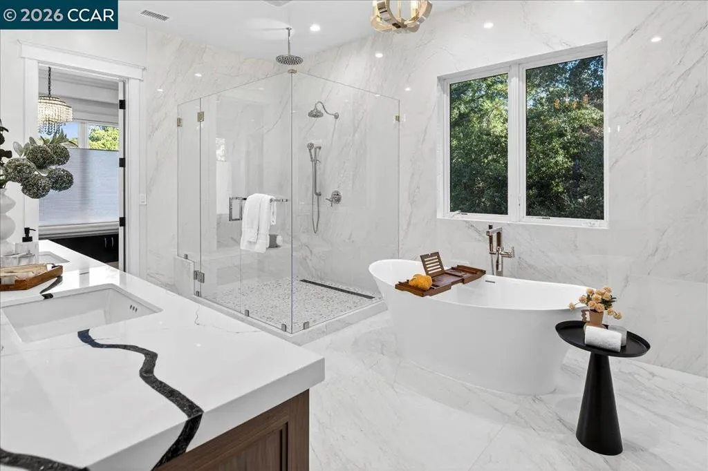 Stunning solar-powered estate built in 2023, offering 8,297 square feet of luxurious living space on a flat acre in the prestigious Atherton. This exceptional residence features 7 spacious bedrooms and 7.5 baths, complemented by a separate guest house with 2 bedrooms and 2 baths—perfect for extended family, visitors, or multigenerational living. A secure gated entry, elegant circular driveway, and graceful fountain set a grand first impression. Step inside to a dramatic curved staircase that ascends to the opulent primary suite, complete with a cozy fireplace and a spa-inspired bathroom retreat. The lower level is a private oasis, offering theater, sauna, and temperature-controlled wine cellar. The heart of the home is the gourmet chef’s kitchen, equipped with top-tier appliances, a dedicated prep kitchen, and a massive 12-foot island that flows seamlessly into the inviting family room—ideal for both everyday living and sophisticated entertaining. Ideally positioned between vibrant San Francisco and the innovation hub of Silicon Valley, this property is also conveniently close to Stanford University and leading tech campuses, offering the perfect blend of tranquility and accessibility in one of America’s most exclusive zip codes.