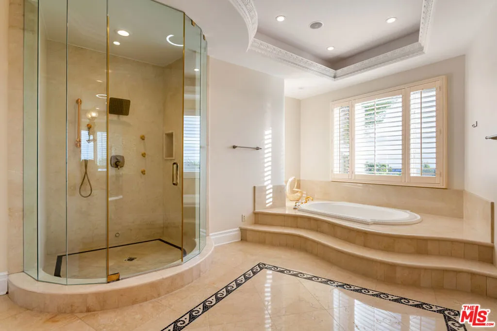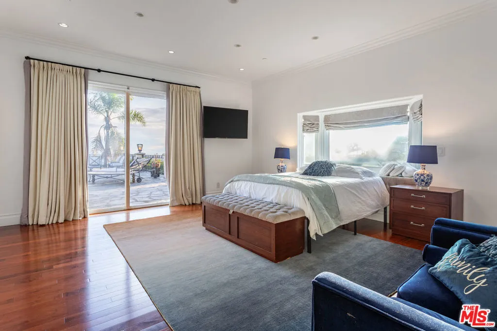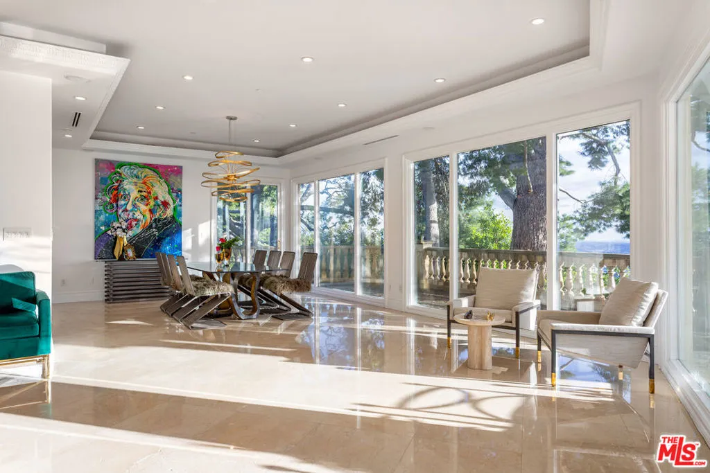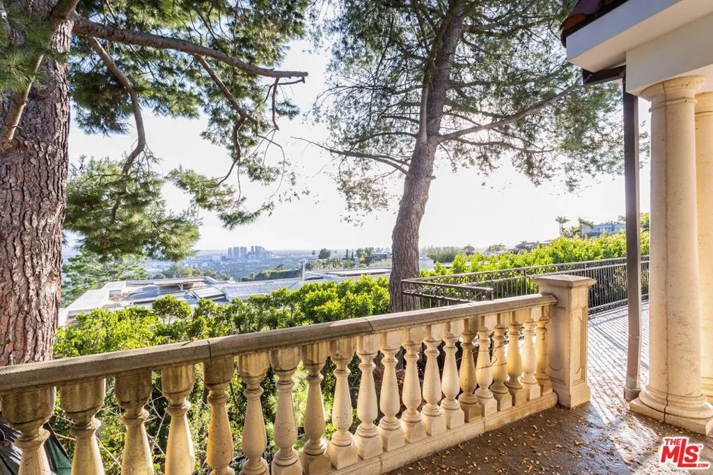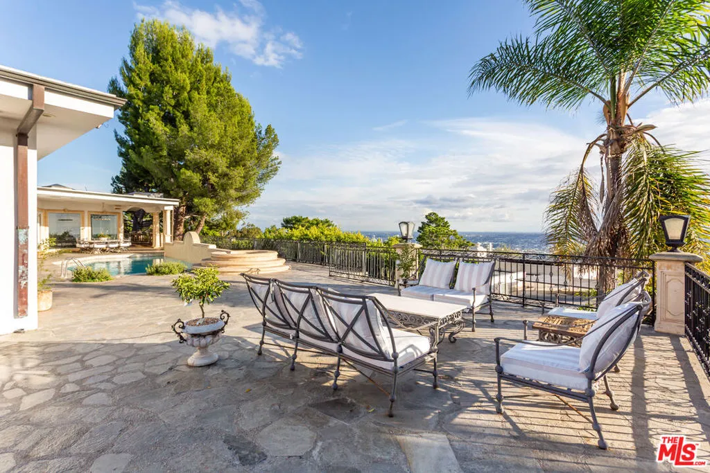 ** FULLY FURNISHED AS SEEN** 1491 Carla Ridge is a Santa Barbara Modern estate with breathtaking views, basketball court and recently reimagined with exquisite designer touches, including contemporary art, and all-new luxury furnishings throughout. The home delivers a resort-style experience. Set behind gates on a massive private estate, the property welcomes you with a grand motor court and immediately draws your eye to sweeping, jaw-dropping panoramic views showcased from nearly every room. Light-filled interiors flow effortlessly to multiple terraces and outdoor spaces, each capturing the unparalleled vistas that define this home. Resort-style amenities include a gated basketball/sport court, a private gym, library, billiard room, and numerous private lounge areas thoughtfully placed throughout the home perfect for a large family seeking both connection and separation. The grounds offer an abundance of usable flat outdoor space for dining, lounging, and entertaining, all framed by dramatic vistas from the backyard and every bedroom. The private primary suite offers unobstructed views over the backyard and the Los Angeles skyline, complete with a spacious dual walk-in closets and a marble spa bathroom. Additional guest suites also feature walk-in closets and beautifully appointed stone bathrooms. A separate lower level enhances both privacy and entertainment, offering two bedrooms, a kitchenette, and a dedicated movie theater ideal for guests, staff, teens, or family living. Mature landscaping and strategic design ensure the property enjoys total privacy while still embracing its incredible scale. A rare property with unmatched views, 1491 Carla Ridge stands as one of the most exciting rental offerings in Beverly Hills.