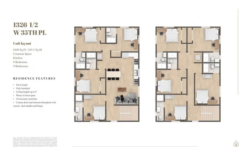 Fantastic opportunity to purchase a newly constructed 70 room student housing facility (including 4 ADUs) within a half mile proximity to USC with A+ Interior Buildouts compared to the competition, in amazing condition. The subject is a 12-unit, four-story, 2024-built co-living student housing apartment complex with a unit mix consisting of four bedroom, seven bedroom, and nine bedroom units exhibiting an average size of 1,794 square feet. It is operating as a fully furnished co-living apartment with 70 bedrooms leased individually on a per bedroom basis with a 308-square-foot average bedroom